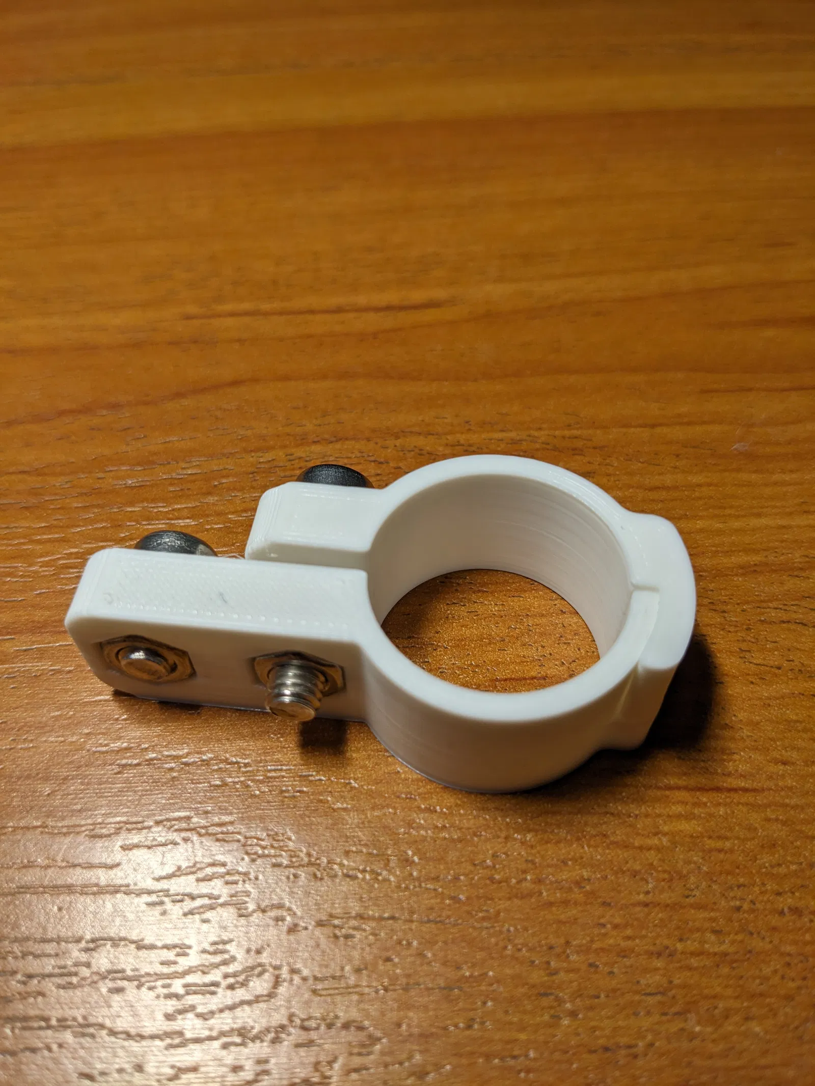 Tui làm mấy cái kẹp này để thay cho kẹp bùn zin bị gãy trên xe đạp điện. Gồm hai mảnh ghép lại, in được bằng PLA/PETG/ABS. Có file .f3d để tùy chỉnh đường kính, ốc, độ dày. Dùng được hơn 1 năm rồi.