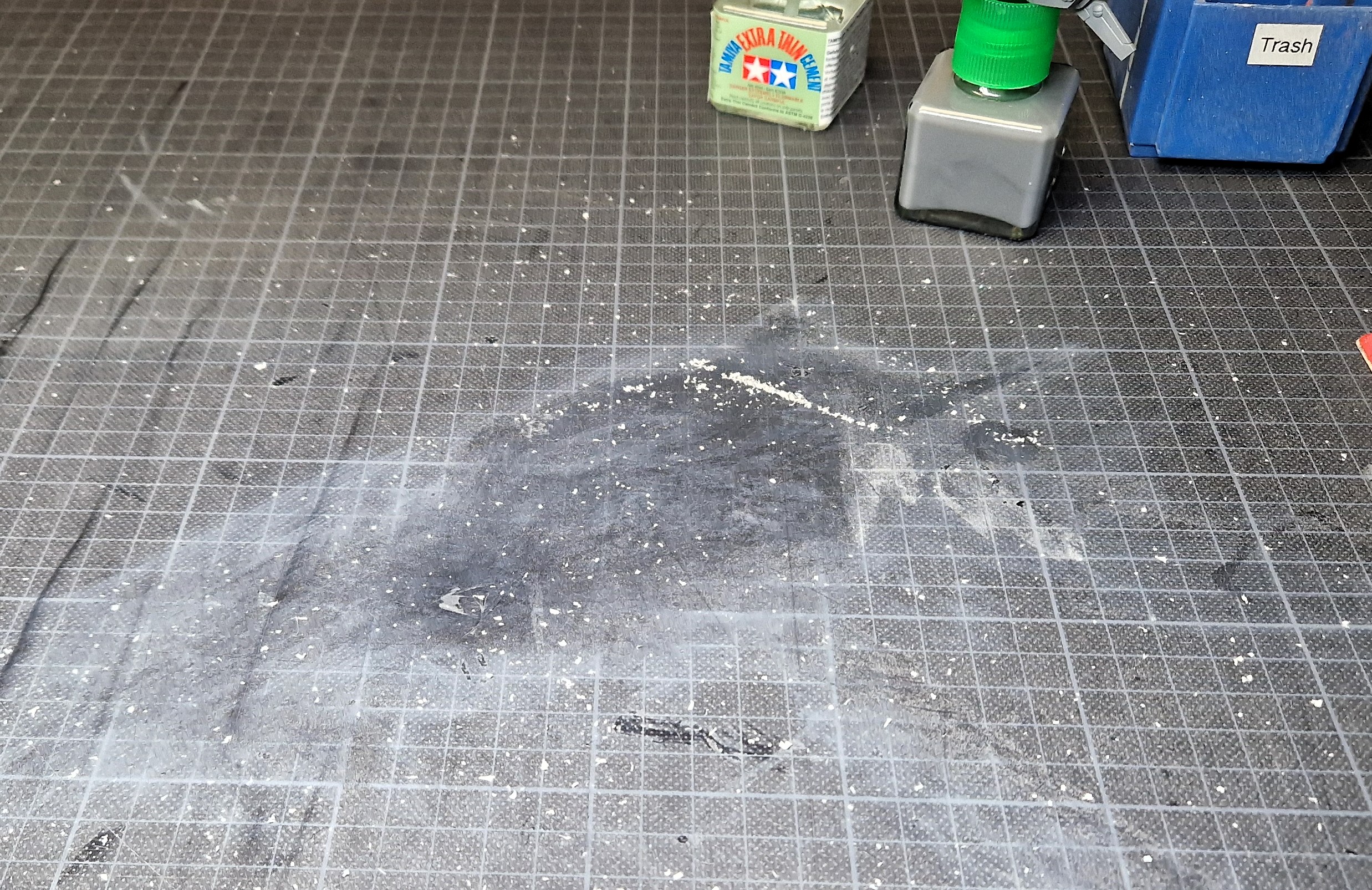 Cái chân đế này thiết kế để đựng hai chai Tamiya vuông, thích hợp cho chai xi măng siêu mỏng hoặc bút kẻ đường. Tui làm cái này sau hai lần làm đổ chai làm hư tấm cắt.