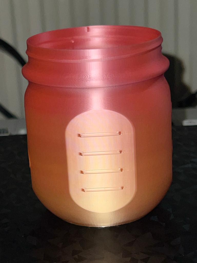 Chiếc hũ Mason này vừa đơn giản vừa thanh lịch, có thể in bằng chế độ bình hoa hoặc chế độ in thông thường. Nắp hũ thì KHÔNG in bằng chế độ bình hoa. Thích hợp để lưu trữ hoặc làm bình hoa.