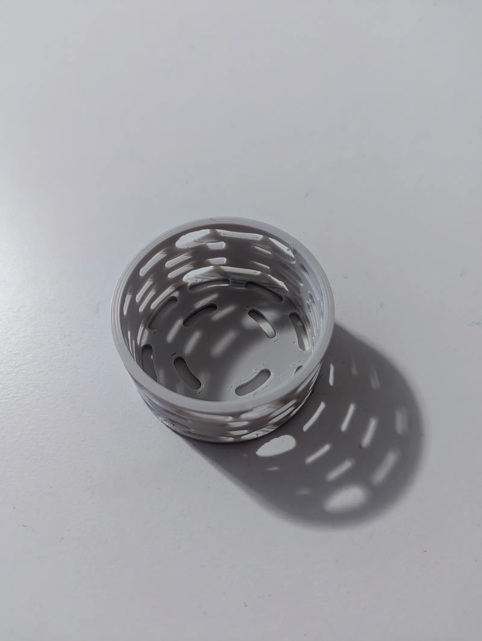 Chặn rác cho cống tắm kiểu "Toe Tap". Mẫu này tui tự làm bằng Fusion360, đo cống nhà tui cao 20mm, đường kính 40mm, cho nước chảy tốt, không bị ngập.
