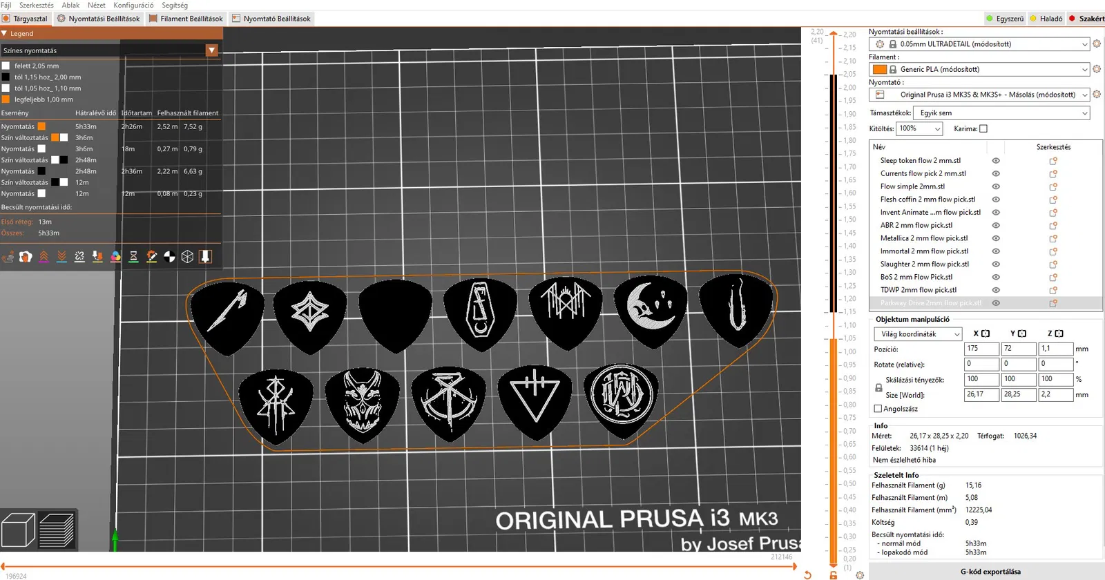 Để có kết quả tốt nhất, nên sử dụng tùy chọn đổi màu trong PrusaSlicer, bằng cách này bạn có thể làm cho logo có màu khác với "thân" pick. Tao đã dùng màu đen và trắng, rất hợp với thiết kế này.