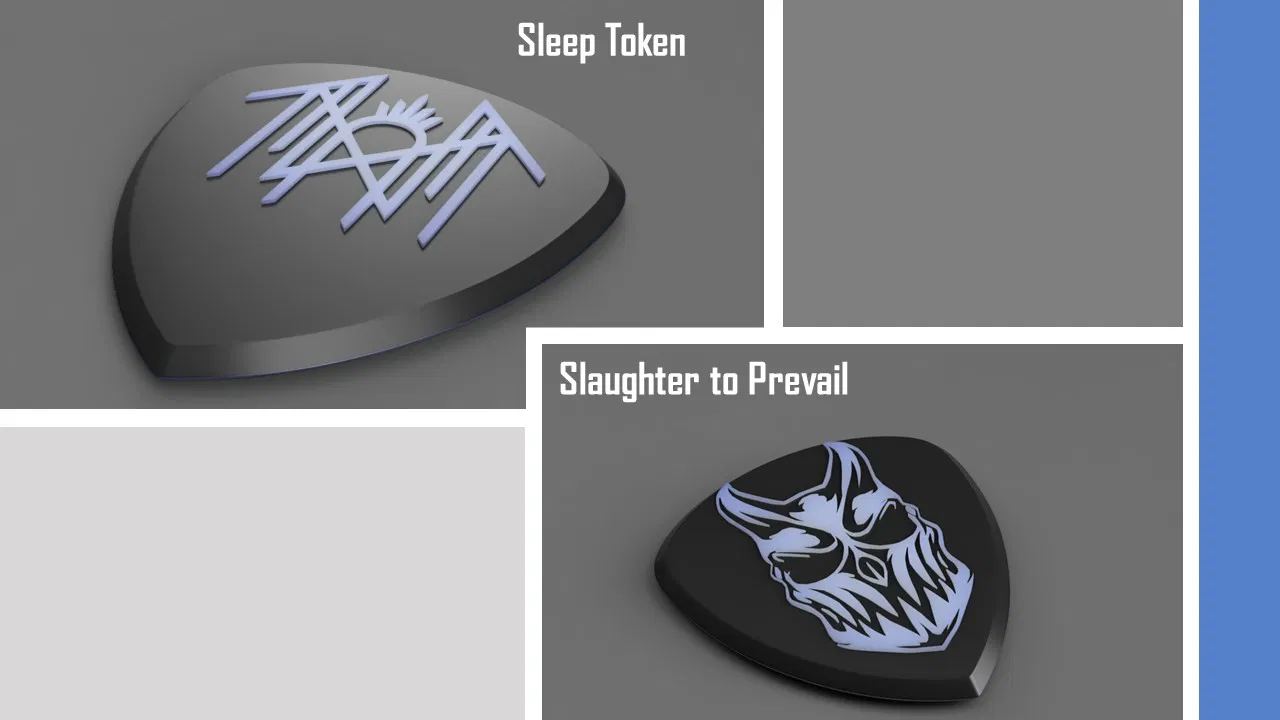 Tuyển tập pick đàn guitar độc đáo, lấy cảm hứng từ các ban nhạc metal, metalcore, deathcore. Có nhiều độ dày và thiết kế khác nhau, cho phép bạn tùy chỉnh logo bằng màu sắc riêng biệt. In bằng PLA hoặc nhựa cứng hơn cho độ bền tối ưu.