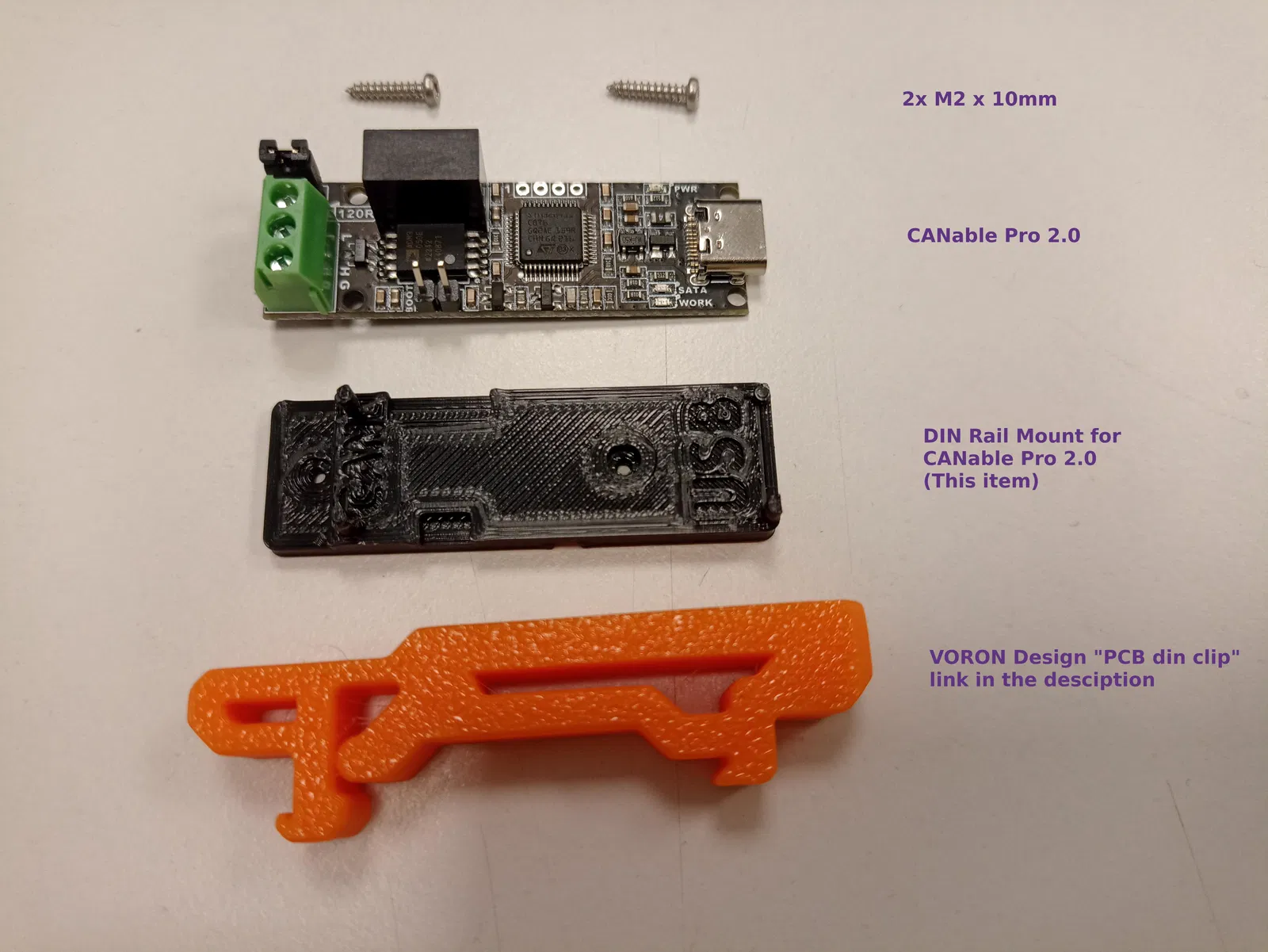 Giá đỡ được thiết kế để gắn trên kẹp DIN PCB của VORON Design, bạn có thể tìm thấy ở đây: https://github.com/VoronDesign/Voron-2/blob/Voron2.4/STLs/Electronics_Bay/pcb_din_clip_x3.stl