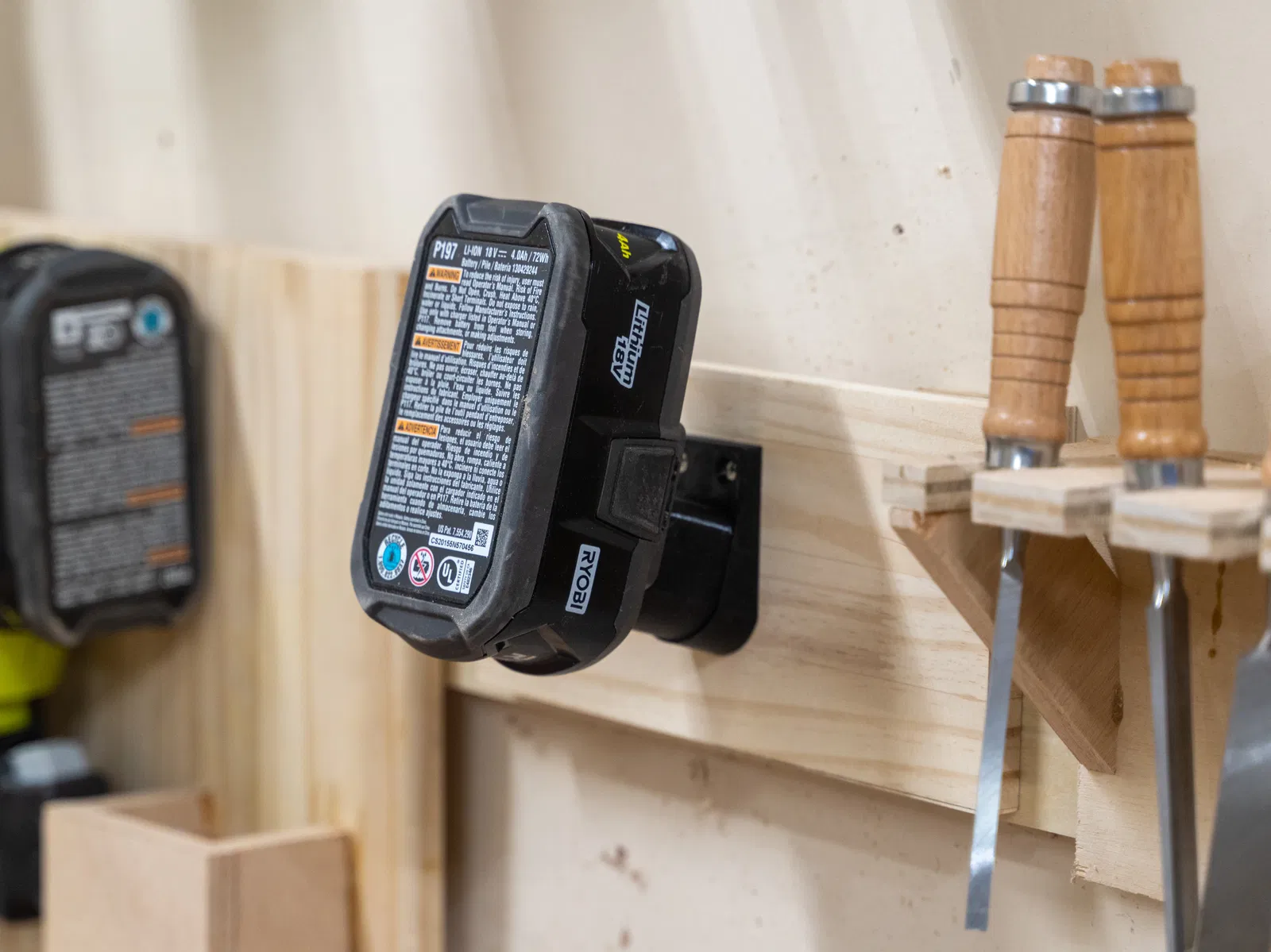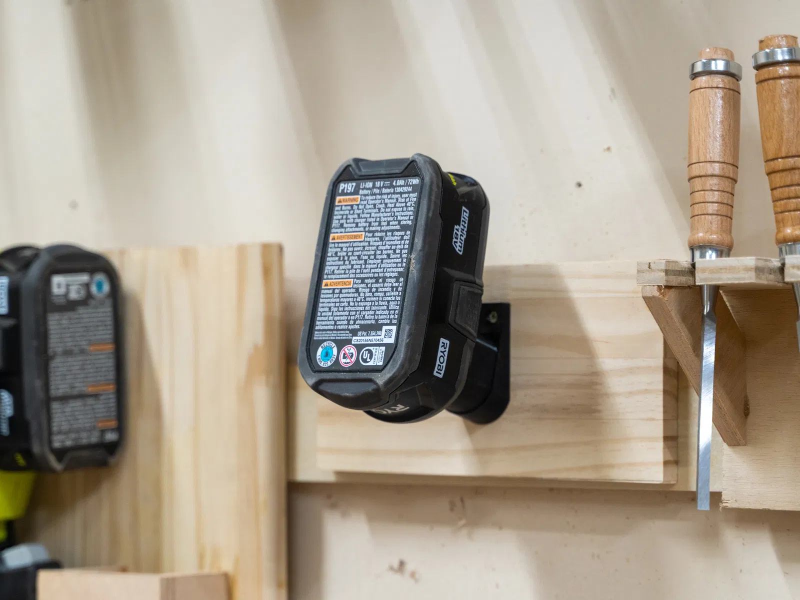 Chán cảnh pin RYOBI thất lạc? Đế giữ này giúp bạn gắn pin lên tường, bảng treo đồ dễ dàng. Thiết kế nhỏ gọn, giữ pin sát tường, phù hợp với mọi kích cỡ pin RYOBI 18V ONE+.