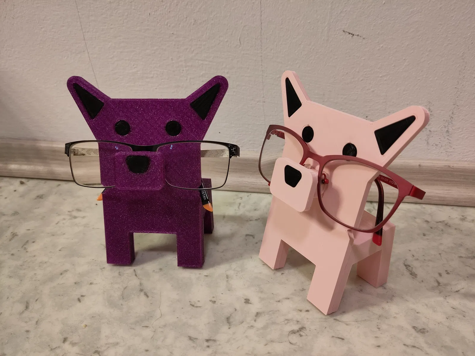 Chỗ để kính hình chú chó ngộ nghĩnh. Bạn có thể bắt vít hoặc dán các bộ phận lại với nhau. Các bộ phận mũi và thân có thể in rời để dễ dàng hơn, hạn chế dùng support.