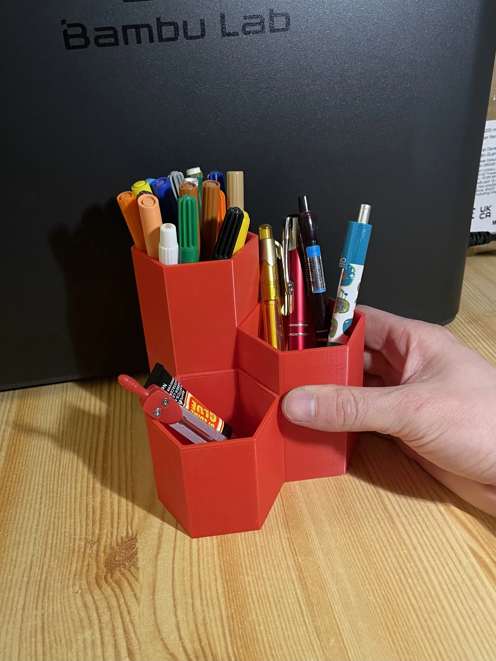 Hộp đựng bút hình lục giác, tha hồ đựng đồ văn phòng, vật dụng vệ sinh cá nhân trong phòng tắm. In vài cái ghép lại vừa tiện vừa đẹp, để đâu cũng xinh.