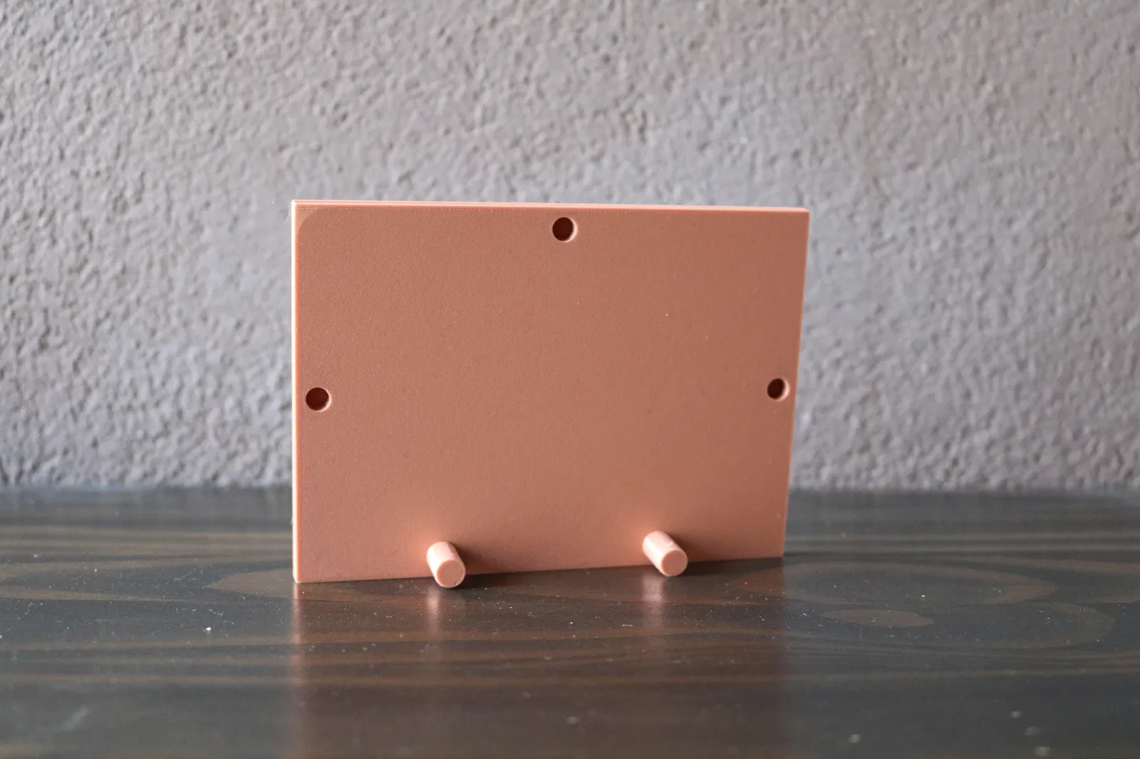Tui khoái cái thiết kế gọn gàng của cái này ghê á, của bạn Shared Objects đó. Cái mẫu gốc á thì chỉ xài vừa cho Instax Mini thôi, mà phim Instax thì có tới 3 loại lận: Mini, Square, với Wide. Tui mod lại để xài vừa cho Instax Wide luôn. Giờ thì mấy bồ có thể để hình Instax Wide của mình ở chế độ dọc hay ngang, treo tường hay để bàn đều được hết. Thay hình cũng dễ nữa, chỉ cần trượt cái mặt trước ra khỏi cái mặt sau là xong. #### Hướng dẫn in ấn In cái khung úp mặt xuống cái tấm textured để có bề mặt đẹp nha. Tui có chỉnh lại cái chốt của bạn Shared Objects gốc (có kèm theo luôn đó) bằng cách scale lên 102% ở trục X với Y để nó vừa khít, chứ cái chốt gốc hơi lỏng lẻo.
