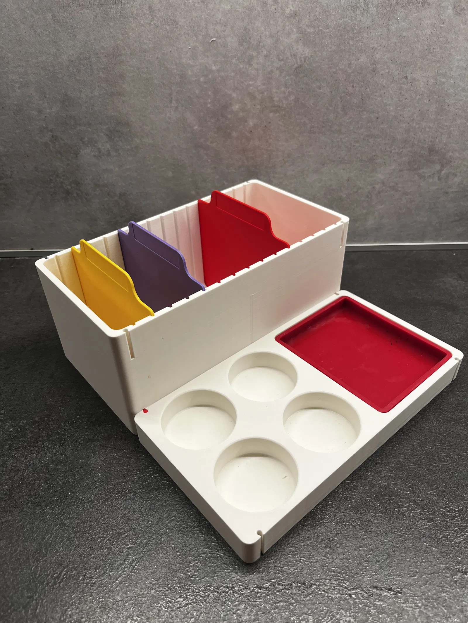 Khay hỗn hợp có chỗ cho khay silicon mà bạn có thể làm bằng khuôn được cung cấp, hoặc bạn có thể in khay cắm trực tiếp.