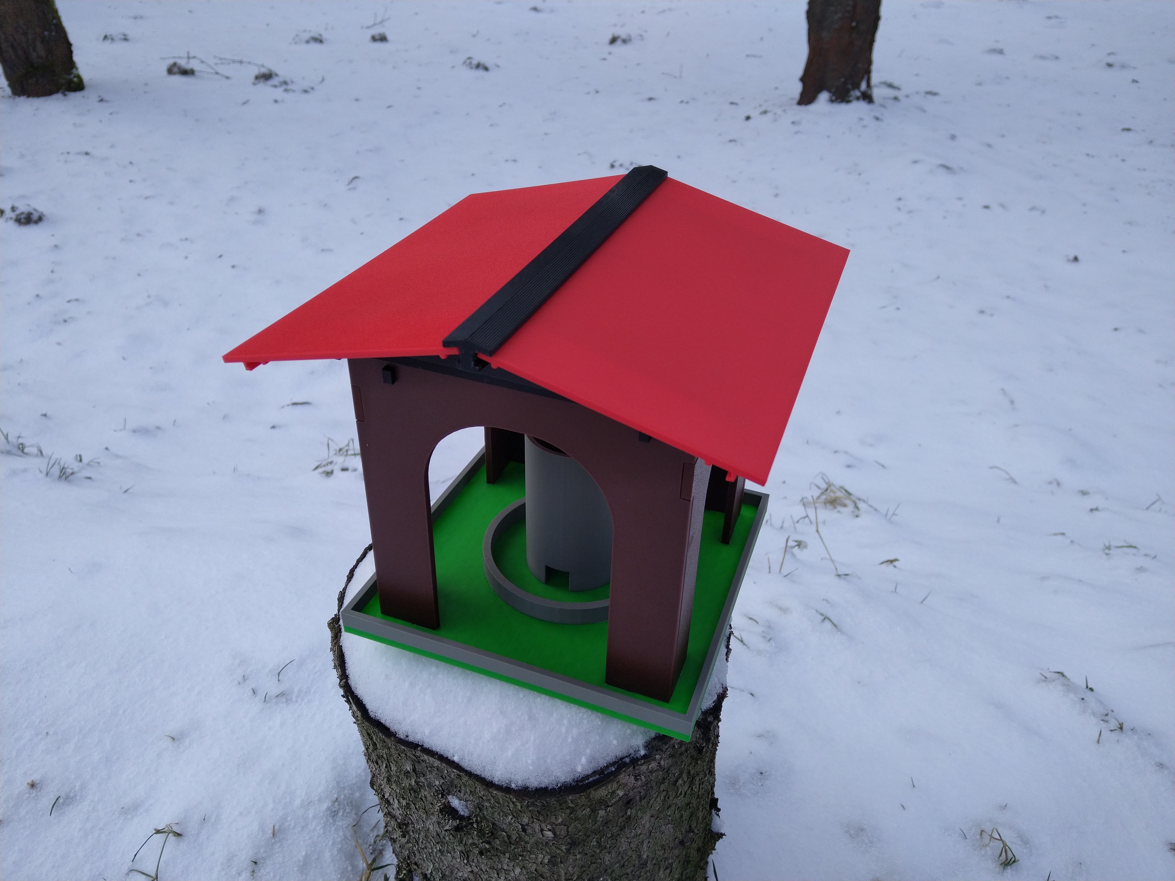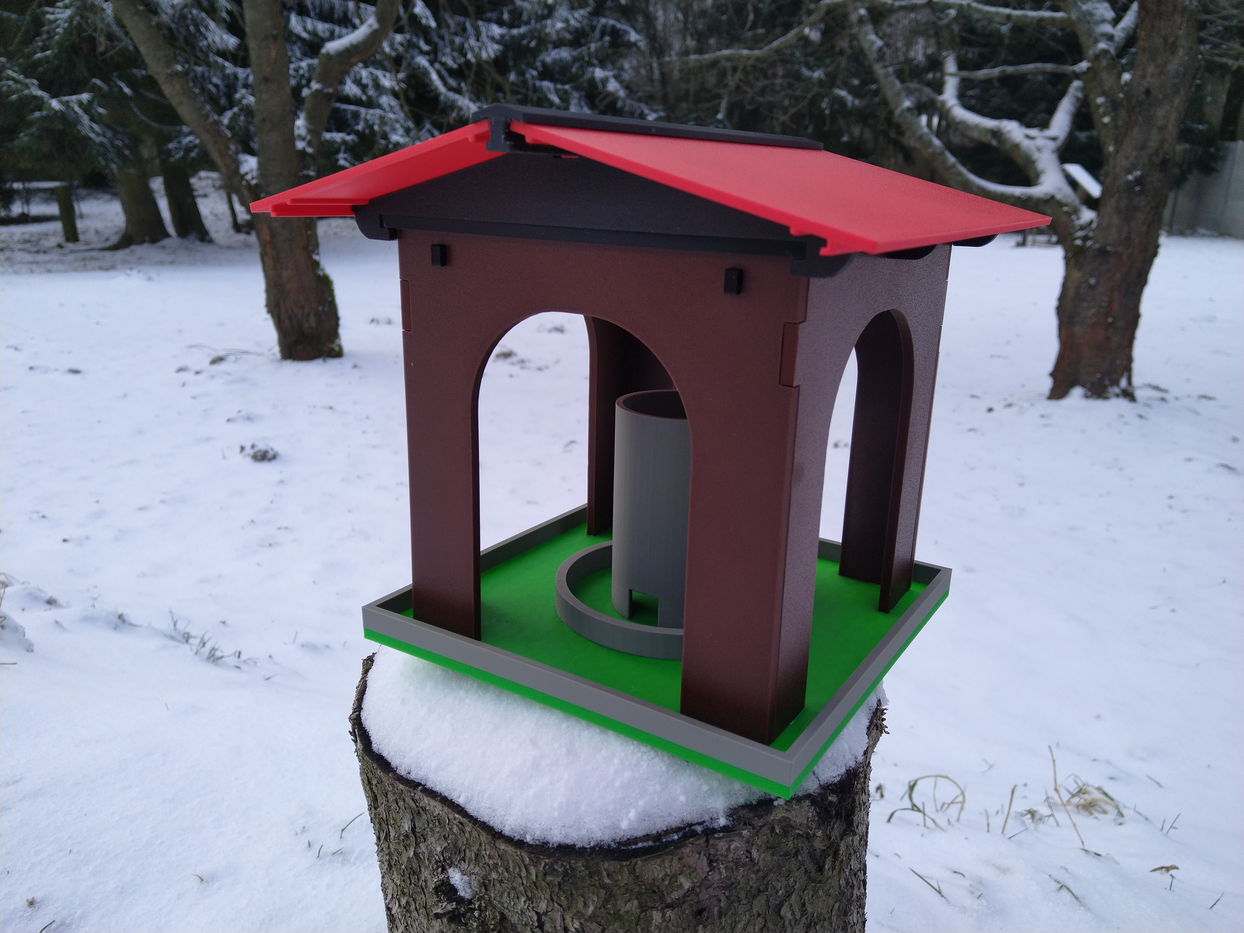 Nhà chim cho chim ăn, có thể lắp ráp dễ dàng mà không cần dùng keo. Một món đồ chơi sáng tạo cho bạn và cả chim nữa!