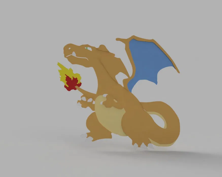 Mô hình tranh 2D Charizard Pokemon, được tạo ra bằng Fusion 360. Thích hợp để treo tường hoặc để bàn, mang đậm phong cách nghệ thuật với hình ảnh rồng lửa quen thuộc của Pokemon.