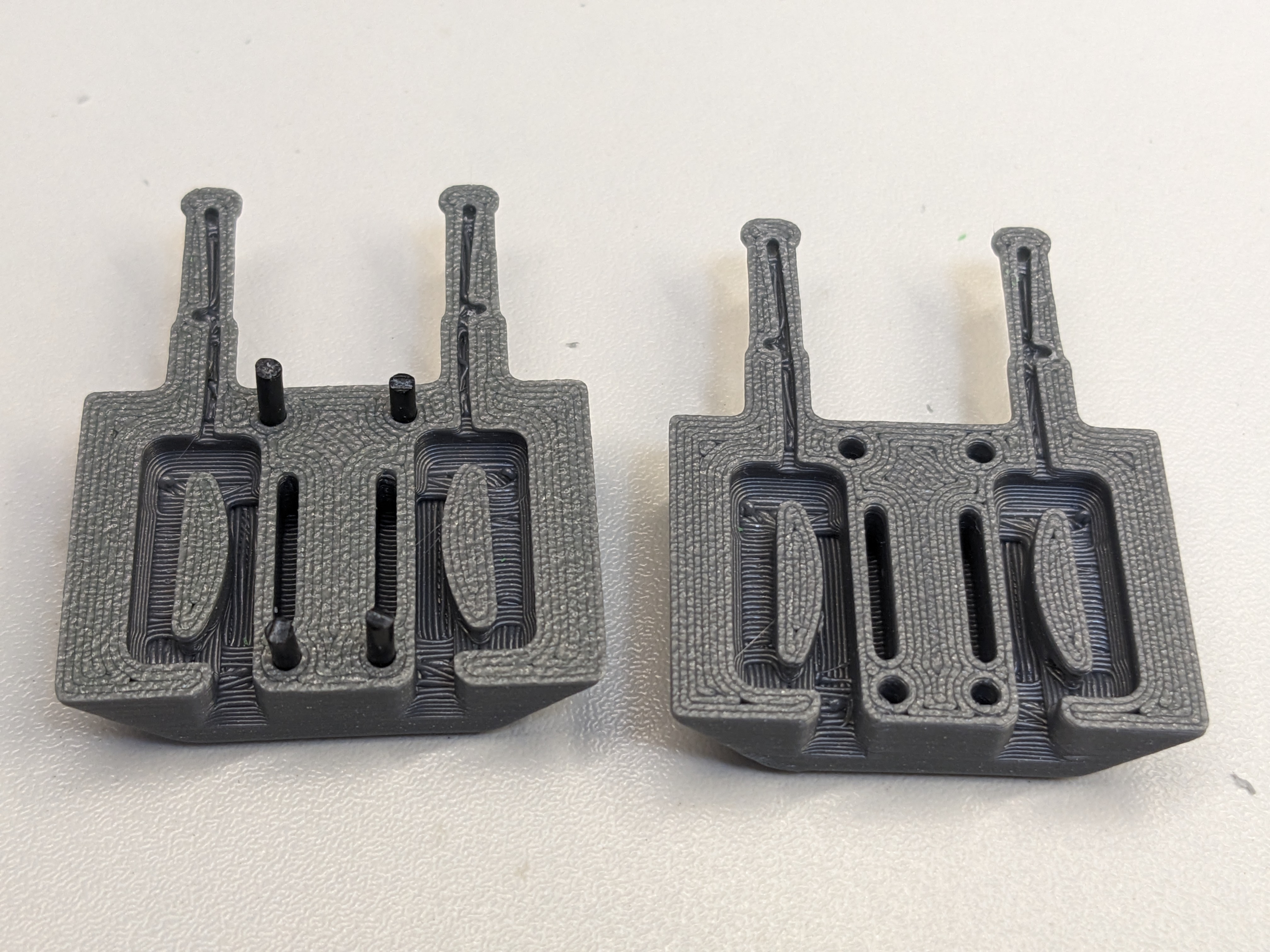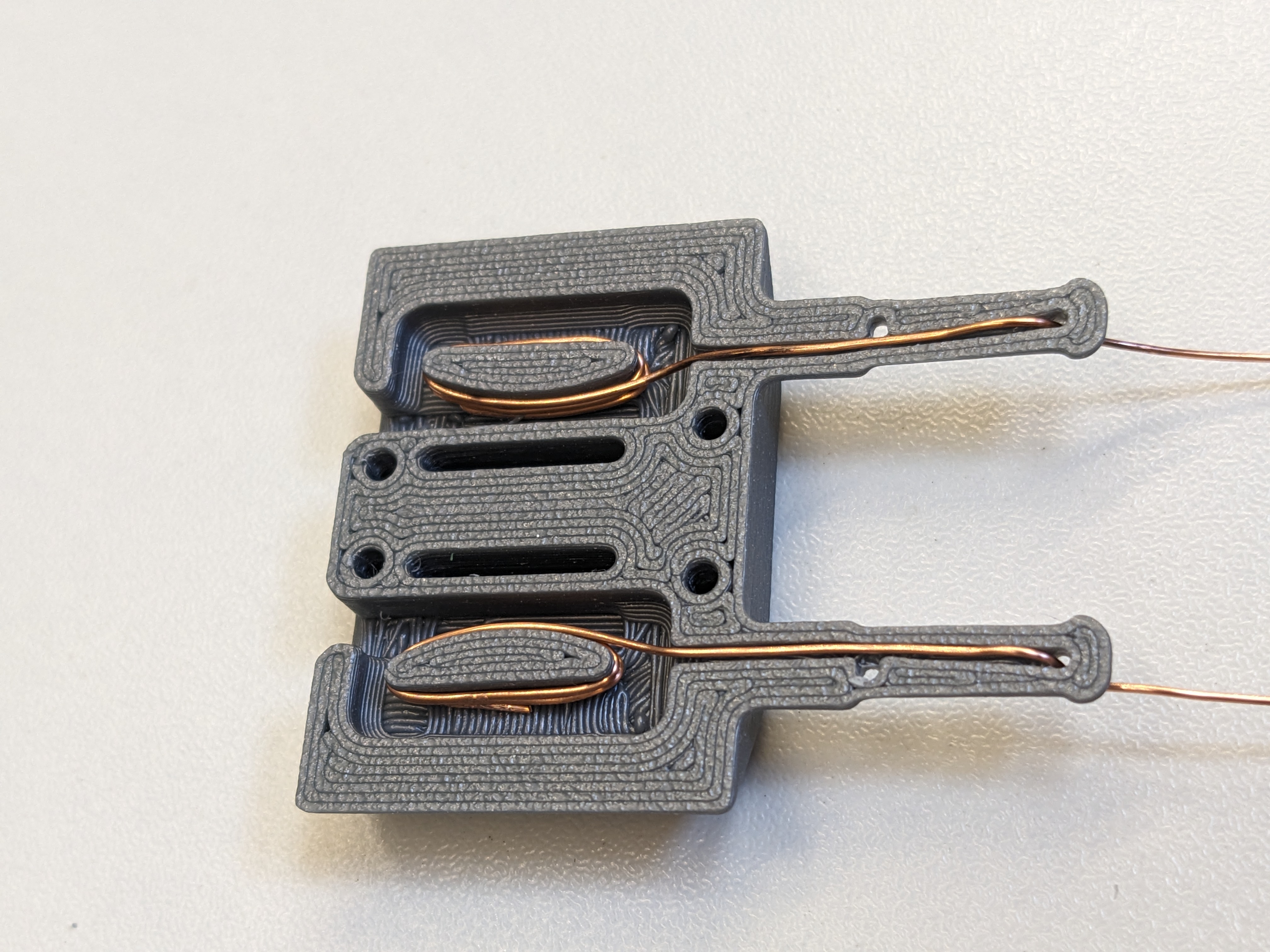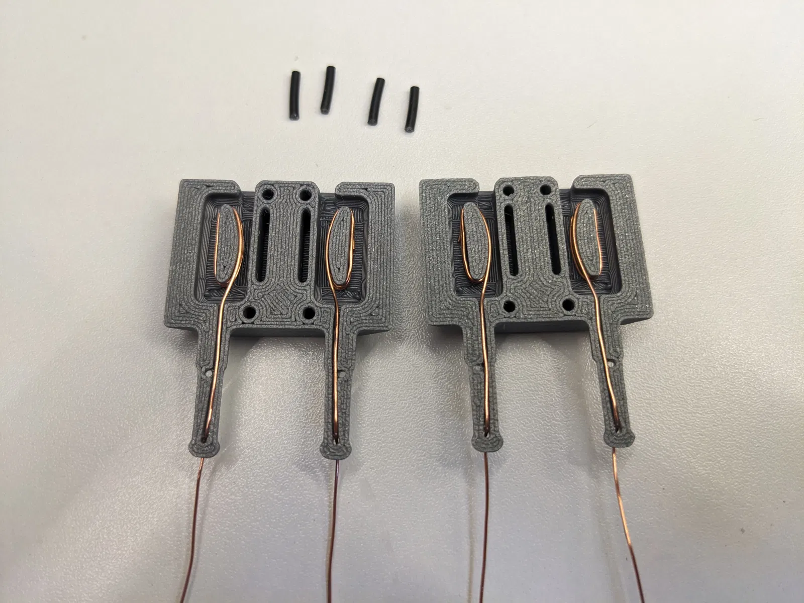 - Để kết nối hai mặt, bốn đoạn dây tóc (filament) dài 10mm được sử dụng làm chốt.