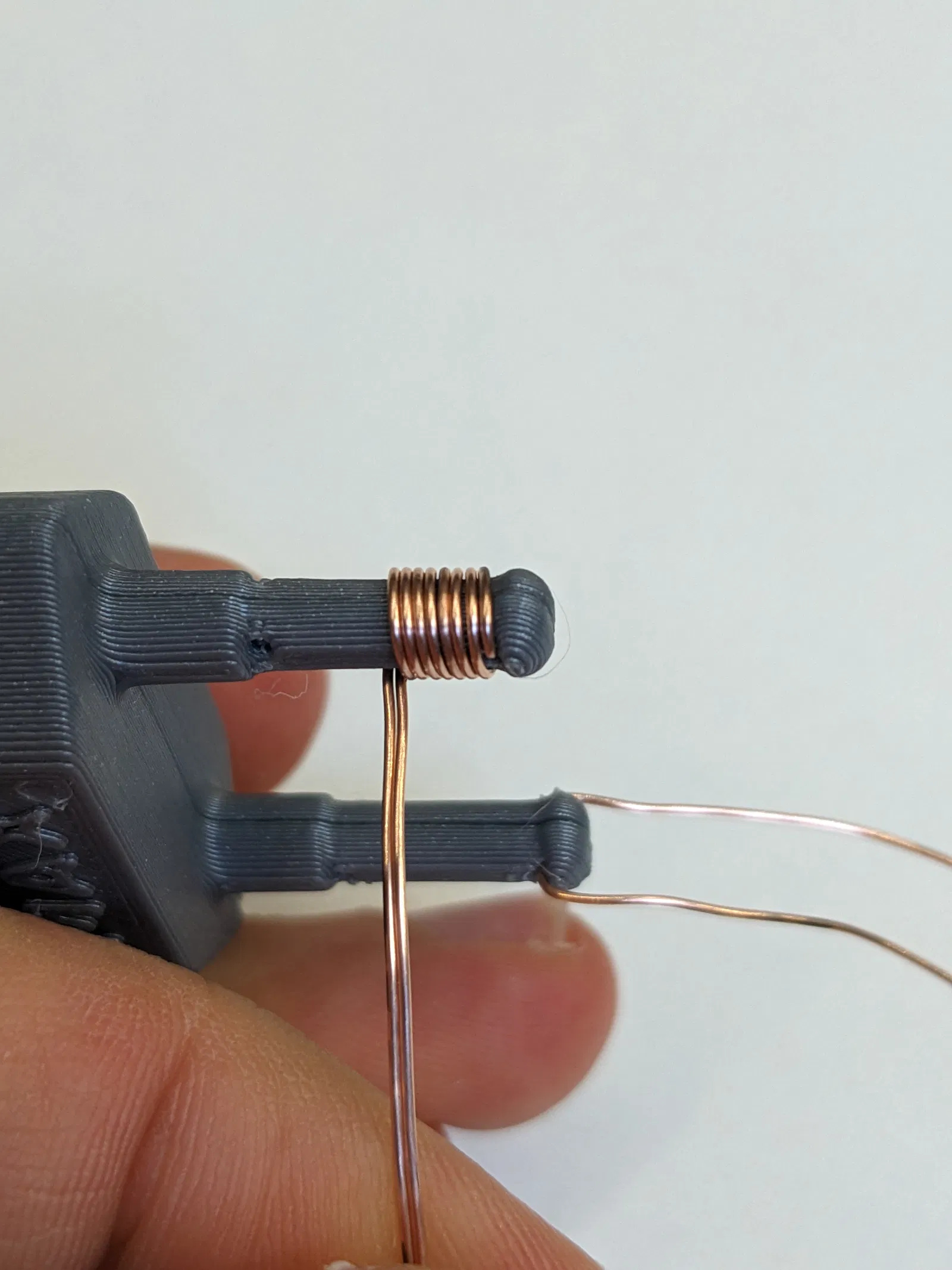 - Quấn 3 vòng dây quanh một lõi in. Cố định một đầu vào lỗ bằng nhíp. Dùng nhíp để hỗ trợ quấn các vòng. Việc này có thể hơi khó khăn. Hãy kiên nhẫn.