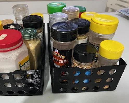 Một khay đựng gia vị tiết kiệm không gian, có thể chứa được nhiều loại gia vị. Thiết kế chắc chắn, không cần support, cho bản in STL tốc độ cao.