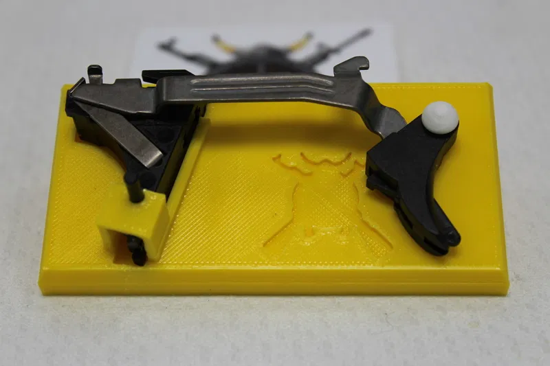 Dụng cụ giữ cò súng Glock phiên bản v2, giúp việc bảo trì và tập luyện dễ dàng hơn. Hướng dẫn in chi tiết với gợi ý về vật liệu PLA và cài đặt máy in Ender 3.