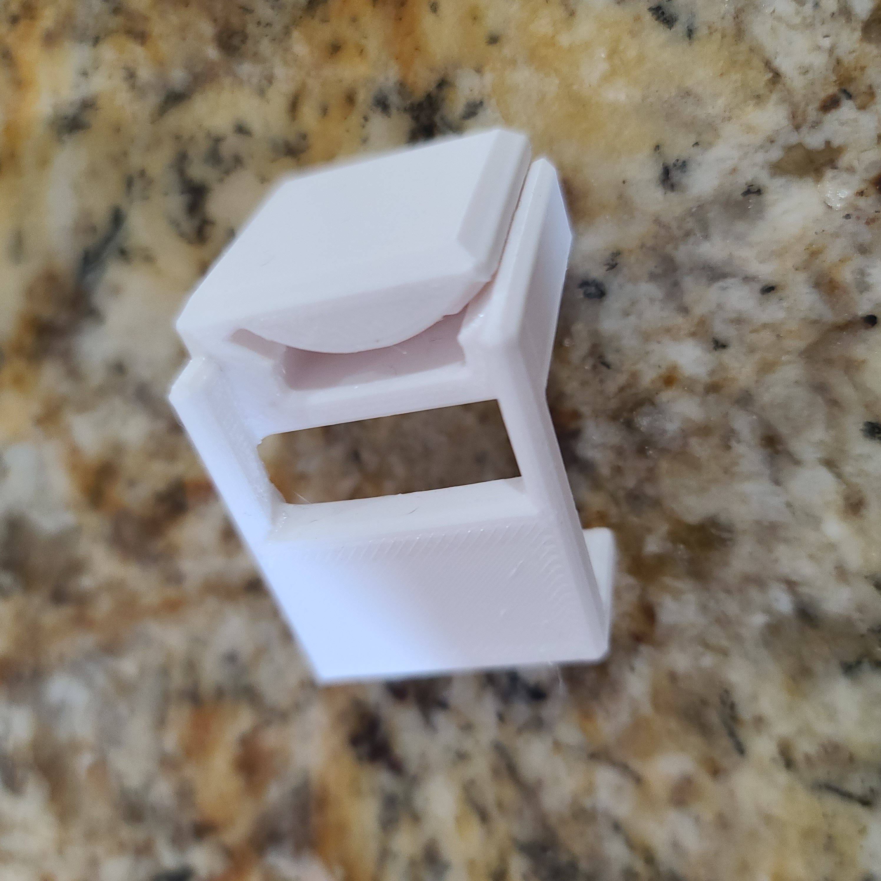 Lưu ý (18-01-2024): Cập nhật một vài kích thước để nó cứng cáp hơn một chút. Cũng thêm phiên bản 3. Nếu bạn gặp vấn đề với cái tấm trượt bị kẹt, hãy thử phiên bản 3. Tôi đã loại bỏ cái rãnh để nó đỡ bị cản trở hơn. Phiên bản gốc vẫn dùng được, và có thể cứng hơn; tuy nhiên, tôi đã in cái của mình ở độ phân giải 0.1 để có bản in chính xác hơn, và bôi trơn cái thanh trượt bằng sáp parafin. Nếu máy của bạn không được thiết lập giống máy tôi thì nó có thể hơi bị chặt.