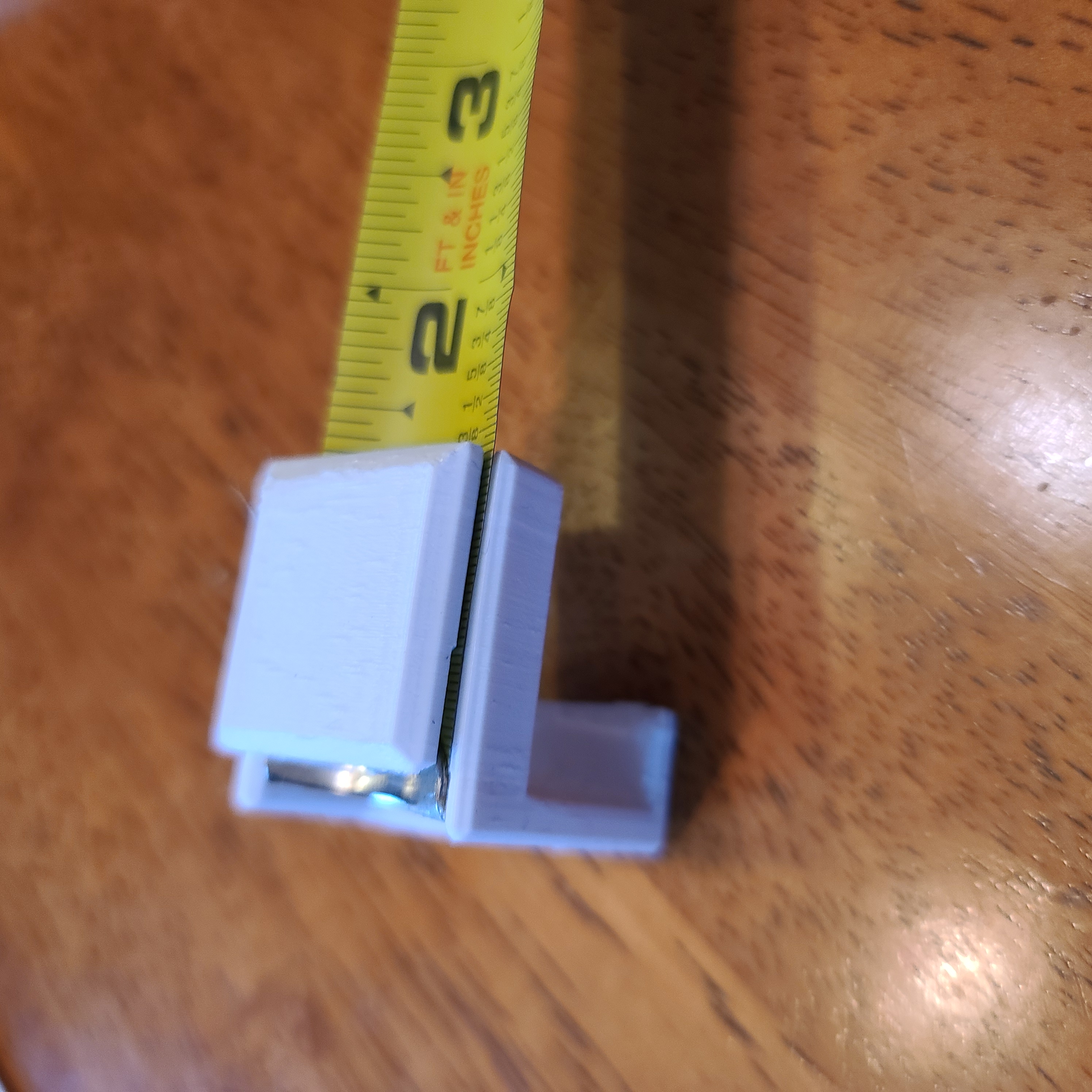 Cái thứ hai là dành cho những lần đo mà chỉ cần móc cái thước dây vào đầu vật là được. Thiết bị này cũng cần có support và support enforcer đặt ở phần nhô ra, để ngăn vật liệu support dính vào rãnh bên trong.