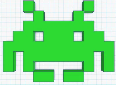 Mô hình in 3D hình ảnh pixel art của Space Invader, một nhân vật huyền thoại từ trò chơi điện tử cổ điển Space Invaders. Thích hợp cho người yêu thích game retro.