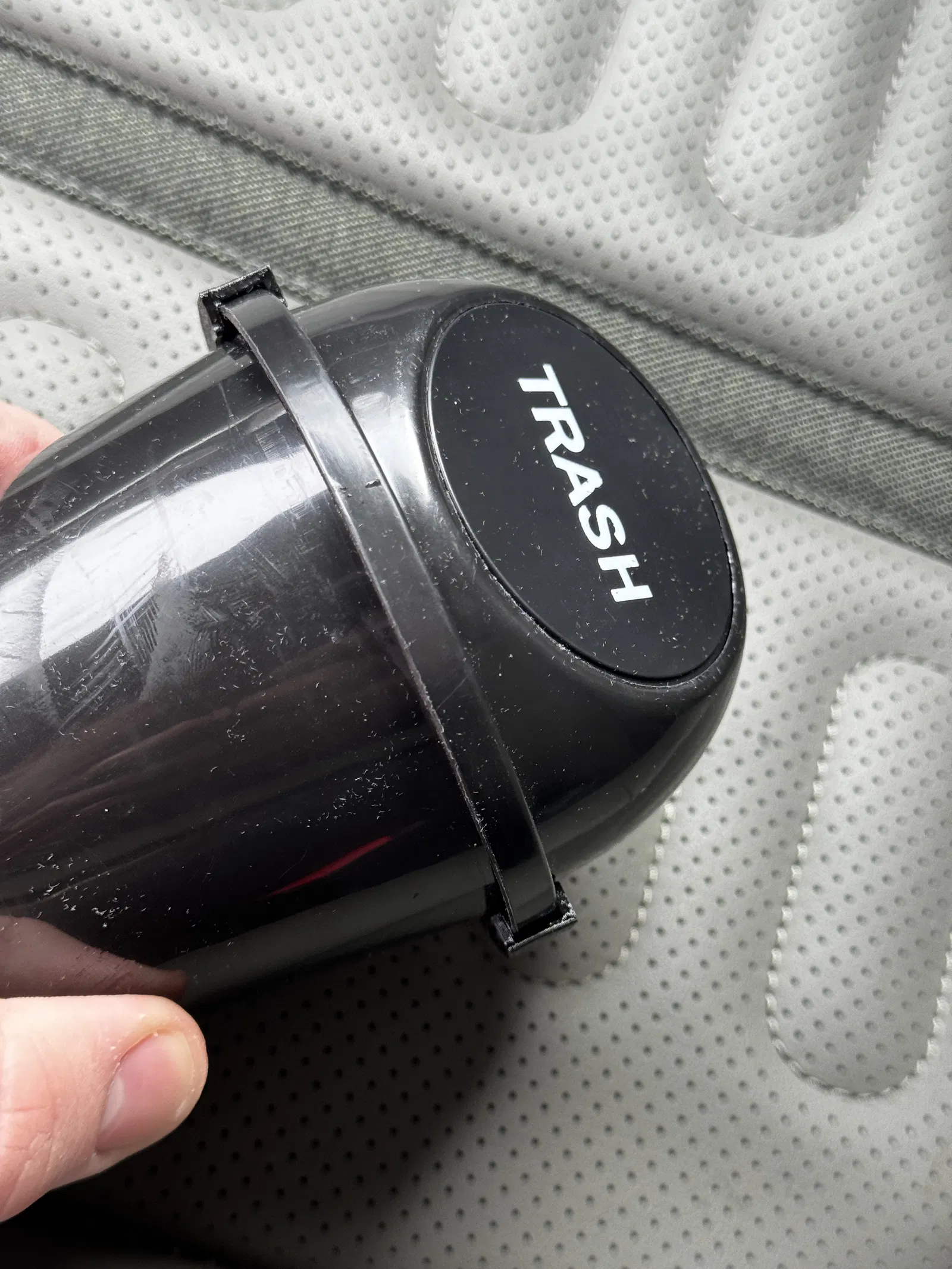 Tôi có để một cái thùng rác nhỏ trong cửa xe và tôi thấy nắp thùng hay bị bật ra lắm, nên tôi chế cái kẹp nhỏ này.
