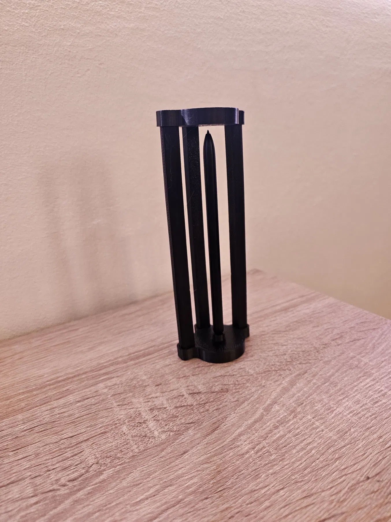 Chỗ để bạn đặt cây bút khi không sử dụng nha. Bạn cần một cục nam châm 10x2 mm là xài được rồi. Nếu bút dài ngắn khác nhau thì chỉnh kích thước trụ theo ý mình nha.