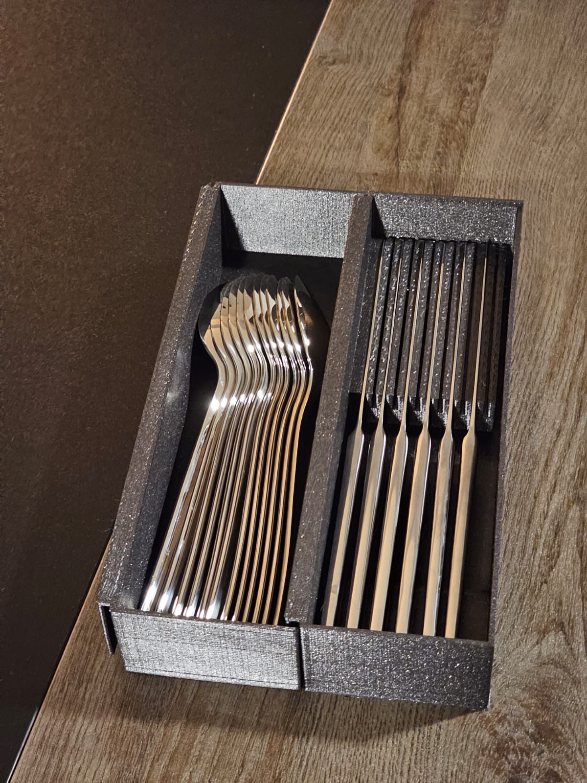 Xin chào mọi người, đây là bộ muỗng nĩa dạng module sáng tạo, một sản phẩm thay đổi cuộc chơi trong việc sắp xếp nhà bếp - với các module có thể điều chỉnh, lồng vào nhau, vừa vặn liền mạch với mọi kích thước ngăn kéo và các ngăn chứa đa năng phục vụ mọi loại dụng cụ ăn uống, bộ sản phẩm bóng bẩy này cho phép người dùng tùy chỉnh không gian ẩm thực của họ một cách dễ dàng.