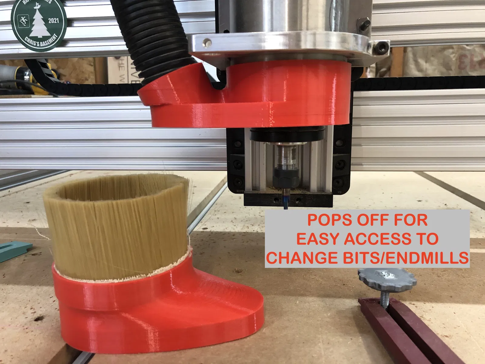 Đầu hút bụi CNC 3D in cho trục chính 80mm, làm từ TPU hoặc PLA dẻo. Thiết kế 2 mảnh, nhỏ gọn, dễ lắp đặt, vừa ống hút 2 inch. Chổi TPU linh hoạt, giảm thiểu hư hại máy khi va chạm.