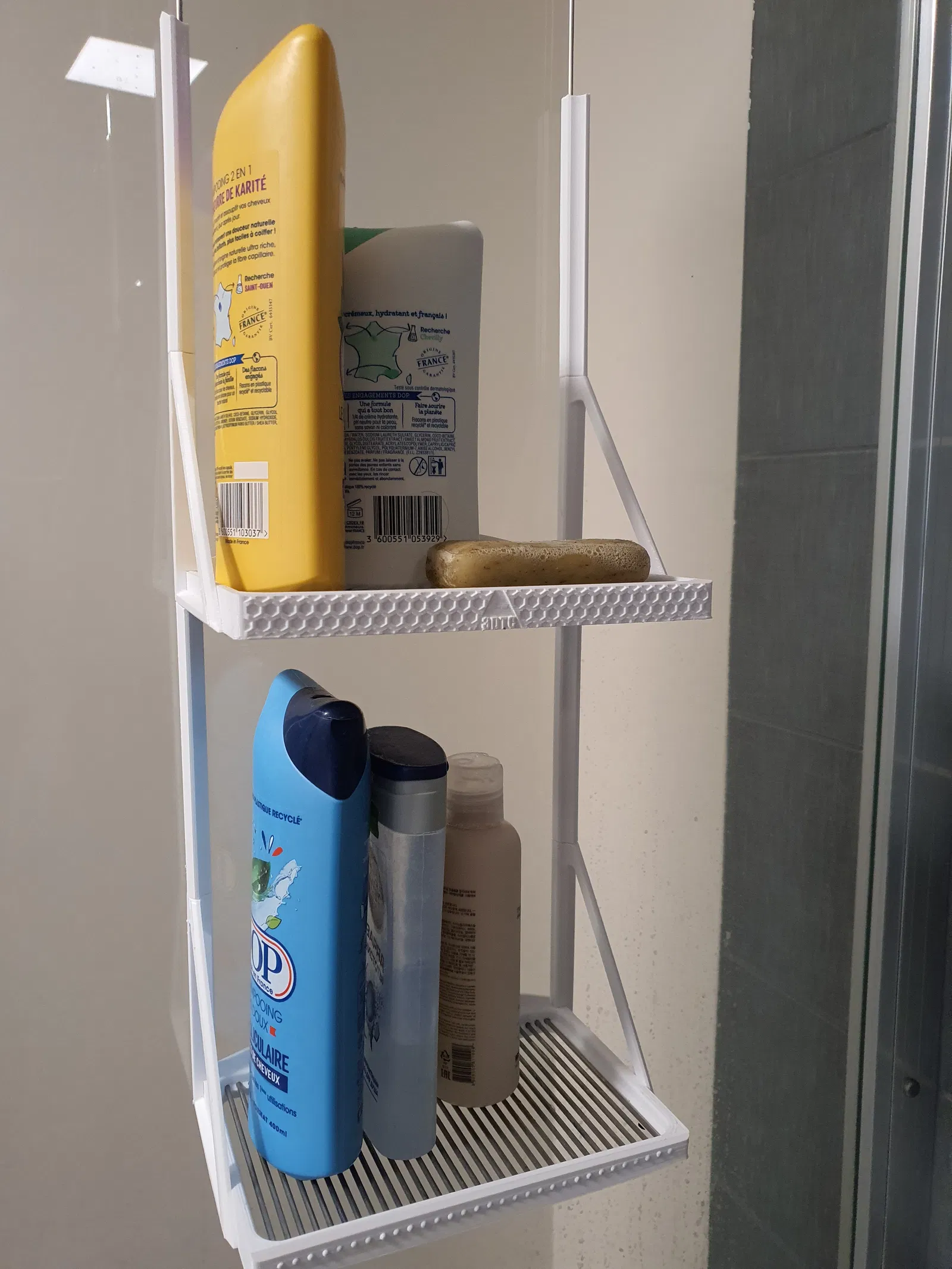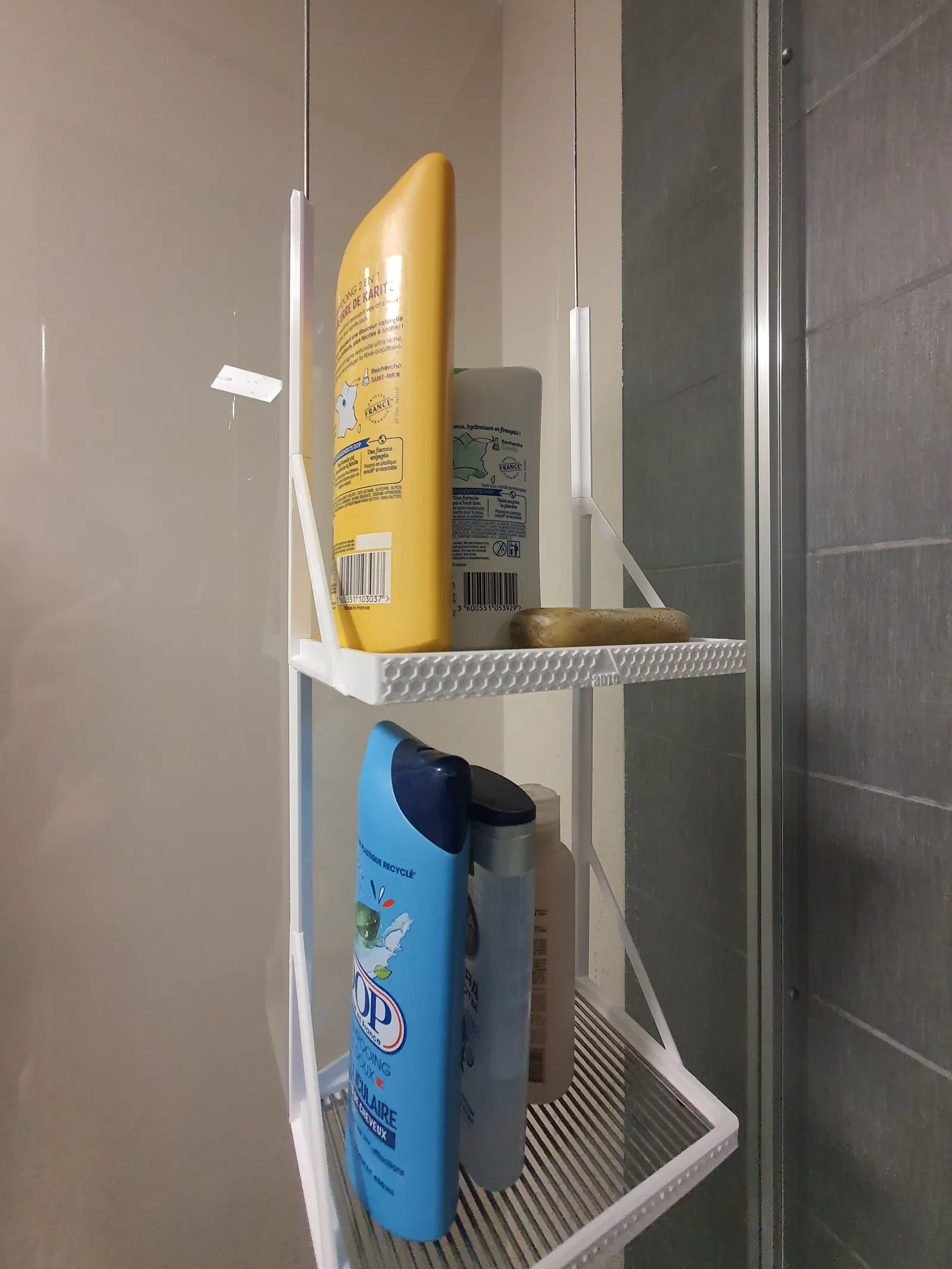 Kệ đa năng tiện dụng cho cabin tắm, giúp bạn chứa xà phòng, sữa tắm và nhiều vật dụng khác. Có thể xếp chồng, có 2 phiên bản (dùng que hàn hoặc in 3D hoàn toàn). Nhẹ, hiệu quả và đa năng, mang đến trải nghiệm tắm rửa thoải mái nhất.