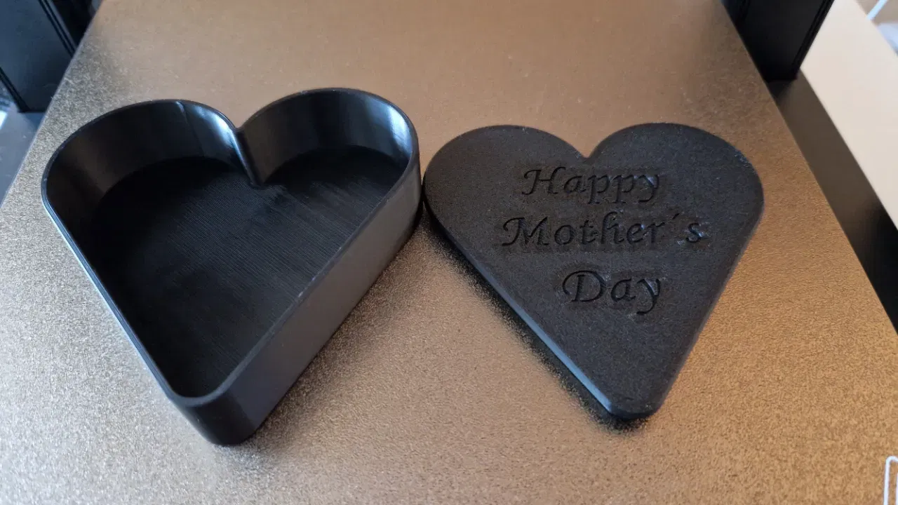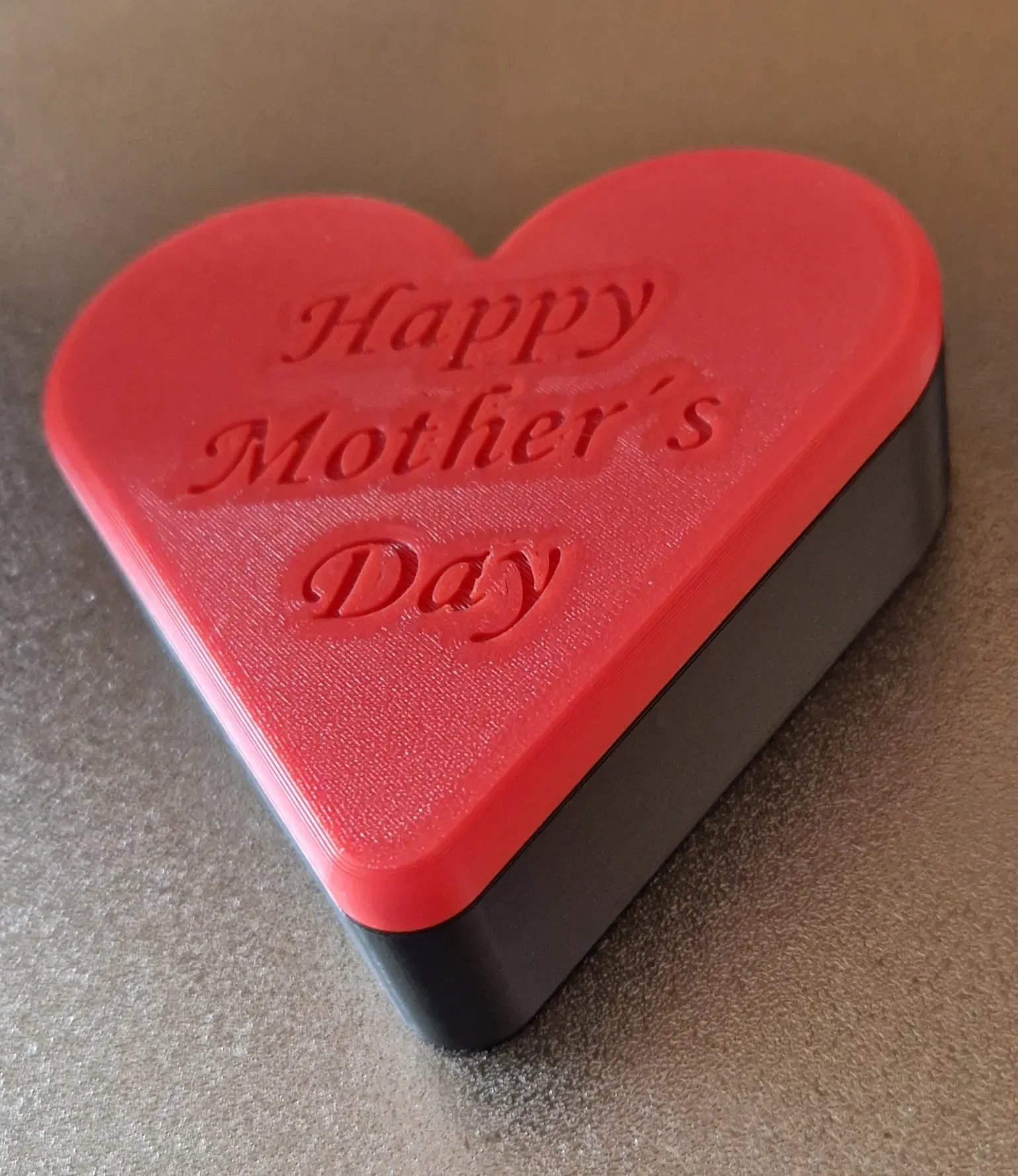Hộp quà trái tim với nhãn "Happy Mother Day" Một lần ở độ cao 20 mm và một lần ở độ cao 30 mm
