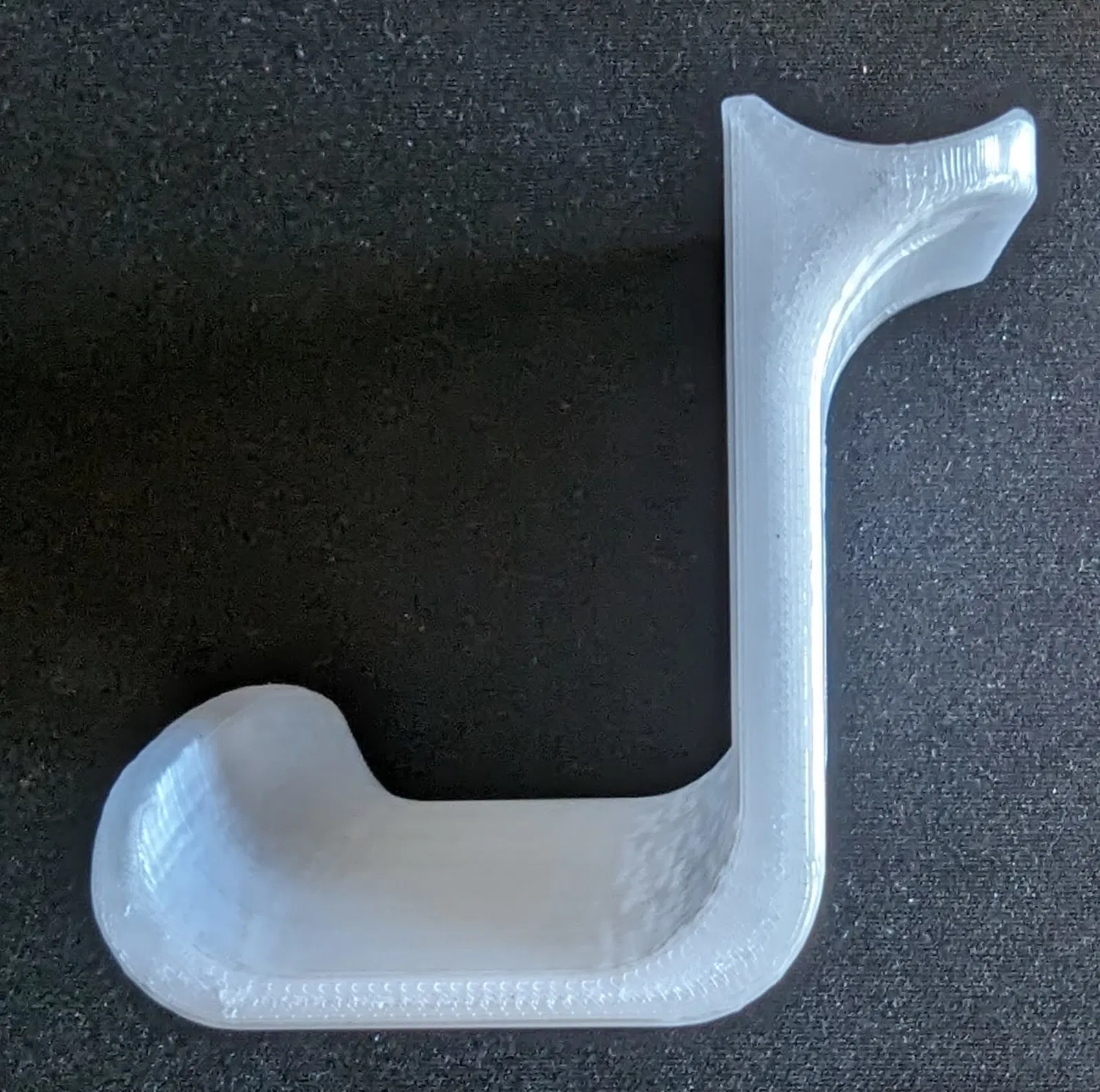 Một bản chỉnh sửa đơn giản của thiết kế kẹp tai nghe của Džino, có thêm một đường cong nhỏ để vừa với ray. Đường ray đo được 2.54cm (1 inch), có thể không đủ vật liệu trên mẫu STL để đặt cao hơn, nhưng gắn tốt hơn cạnh thẳng.