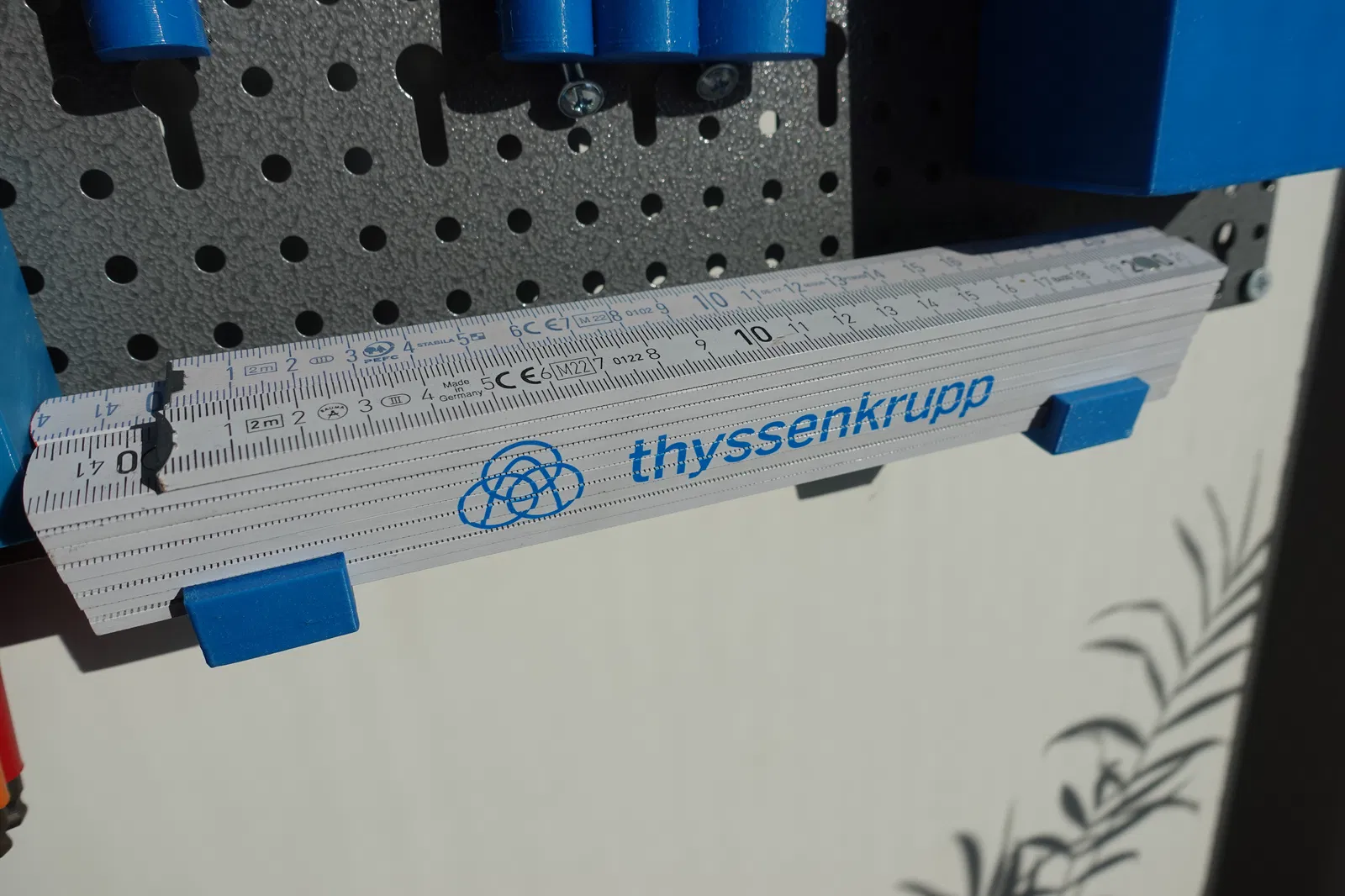 Cái giá đỡ này bạn phải in 2 lần! Nó cho phép bạn gắn các thước dây nhỏ hoặc lớn. Bạn có thể đặt hai cái đứng như trong hình, hoặc chỉ một cái nằm ngang. Thích hợp để treo trên pegboard.