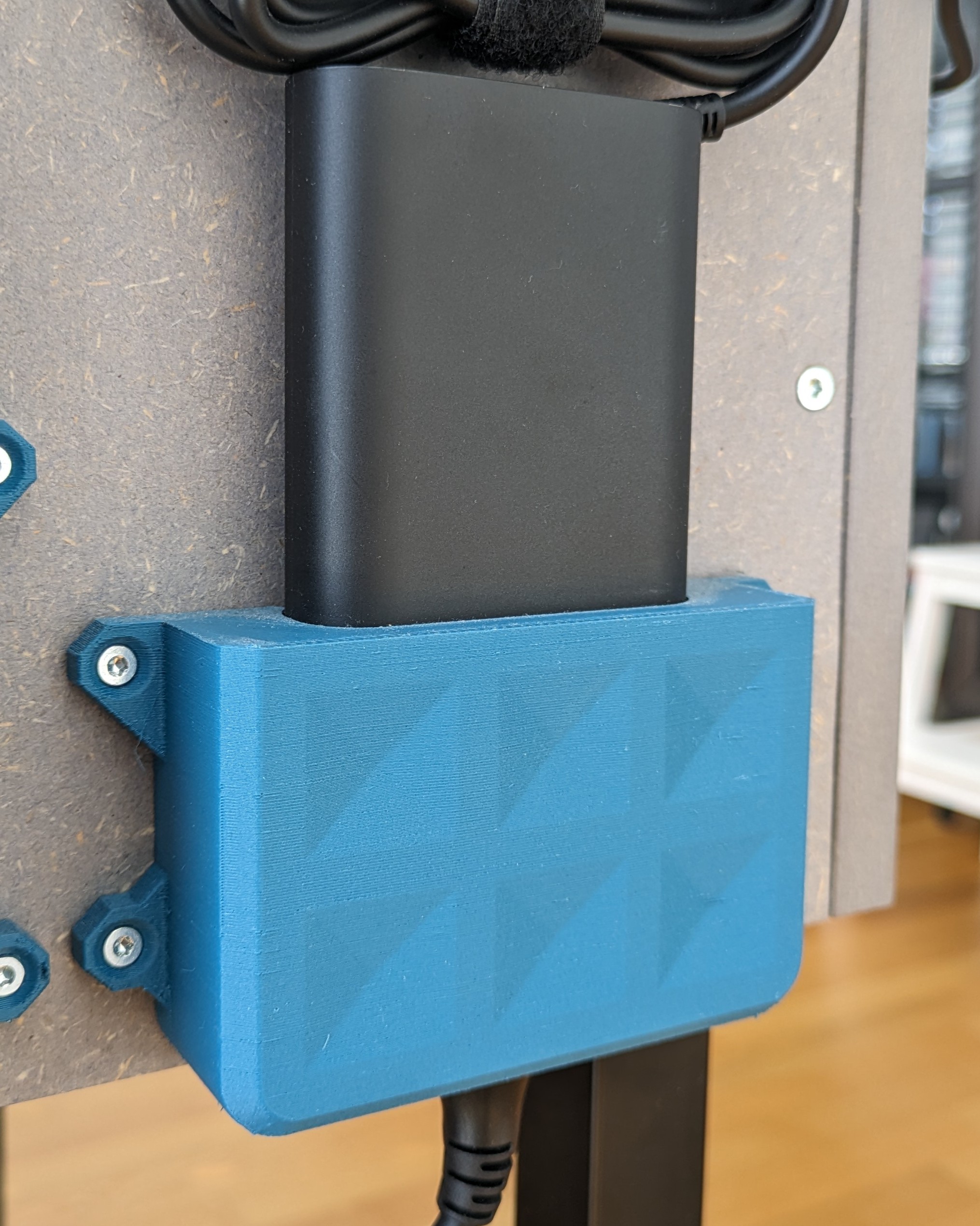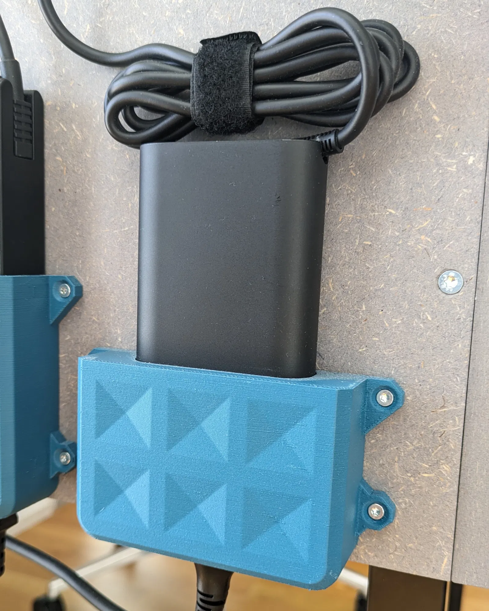 Giá treo tường này được thiết kế để đựng củ sạc laptop HP 150W, giúp bạn tiết kiệm không gian và giữ cho khu vực làm việc gọn gàng. Vật liệu in phù hợp: PLA, PETG.