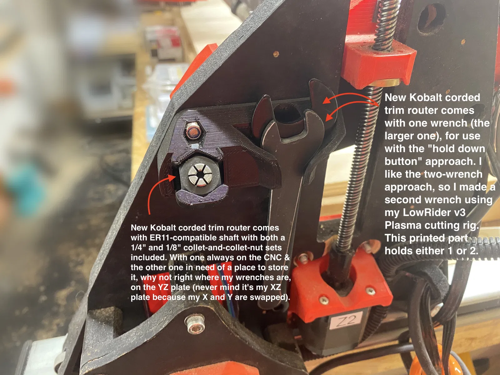 LowRider 3 CNC - Giá đỡ in cho Cờ lê máy phay Kobalt và Bộ đai ốc đầu kẹp ER-11