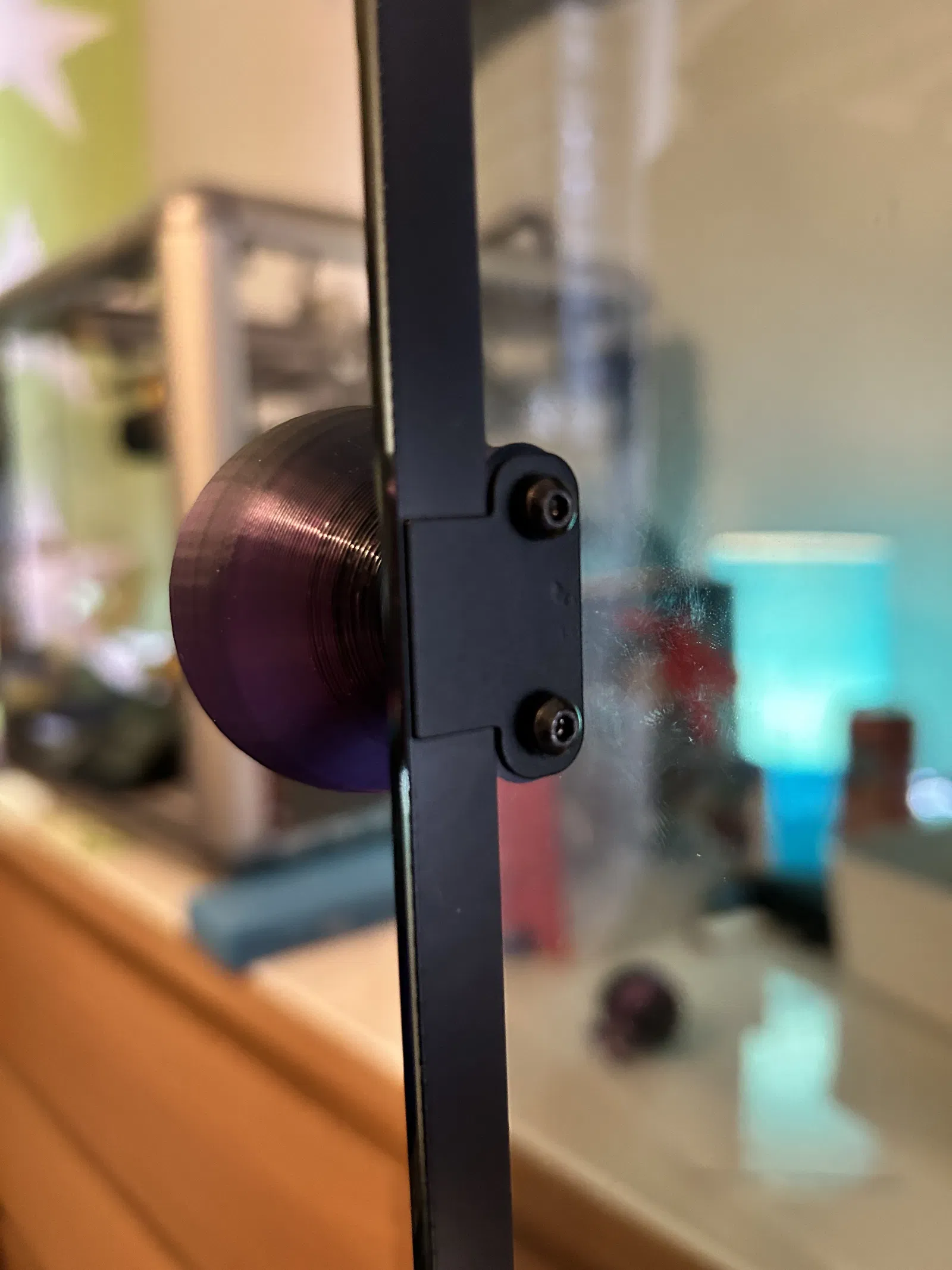 Tao tự thiết kế và in mẫu tay nắm cửa này cho máy Creality K1/K1 Max vì không tìm được cái ưng ý. Không cần thêm phụ kiện, chỉ cần tận dụng đồ cũ. Nhớ in với độ đặc ruột ít nhất 20% nha!