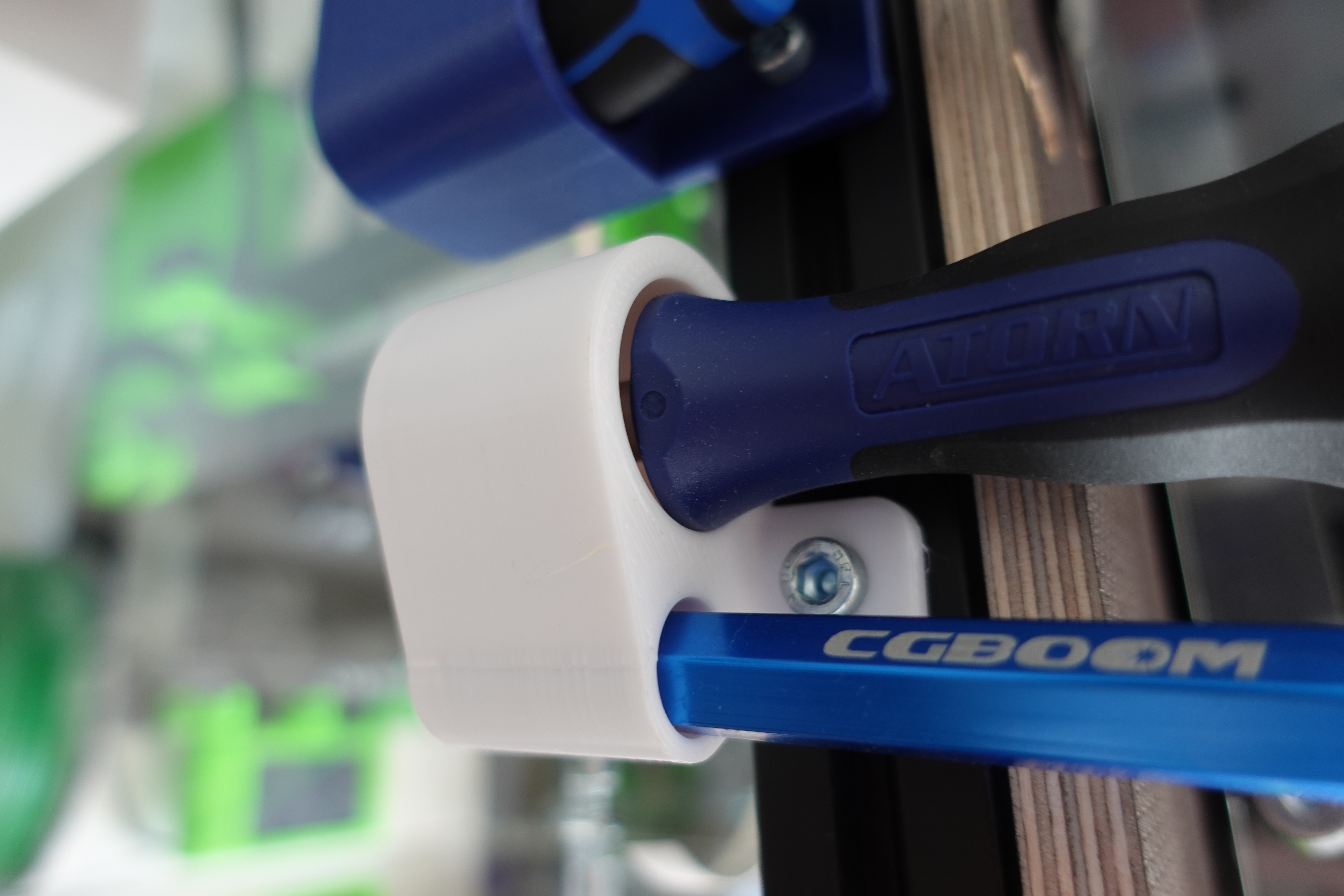 Giá đỡ này dùng để gắn dụng cụ hoàn thiện ngay trên máy in 3D hoặc bàn làm việc. In bằng PLA, ABS, PETG tùy thích, chỉ cần một con ốc M6 và đai ốc rãnh là xong!