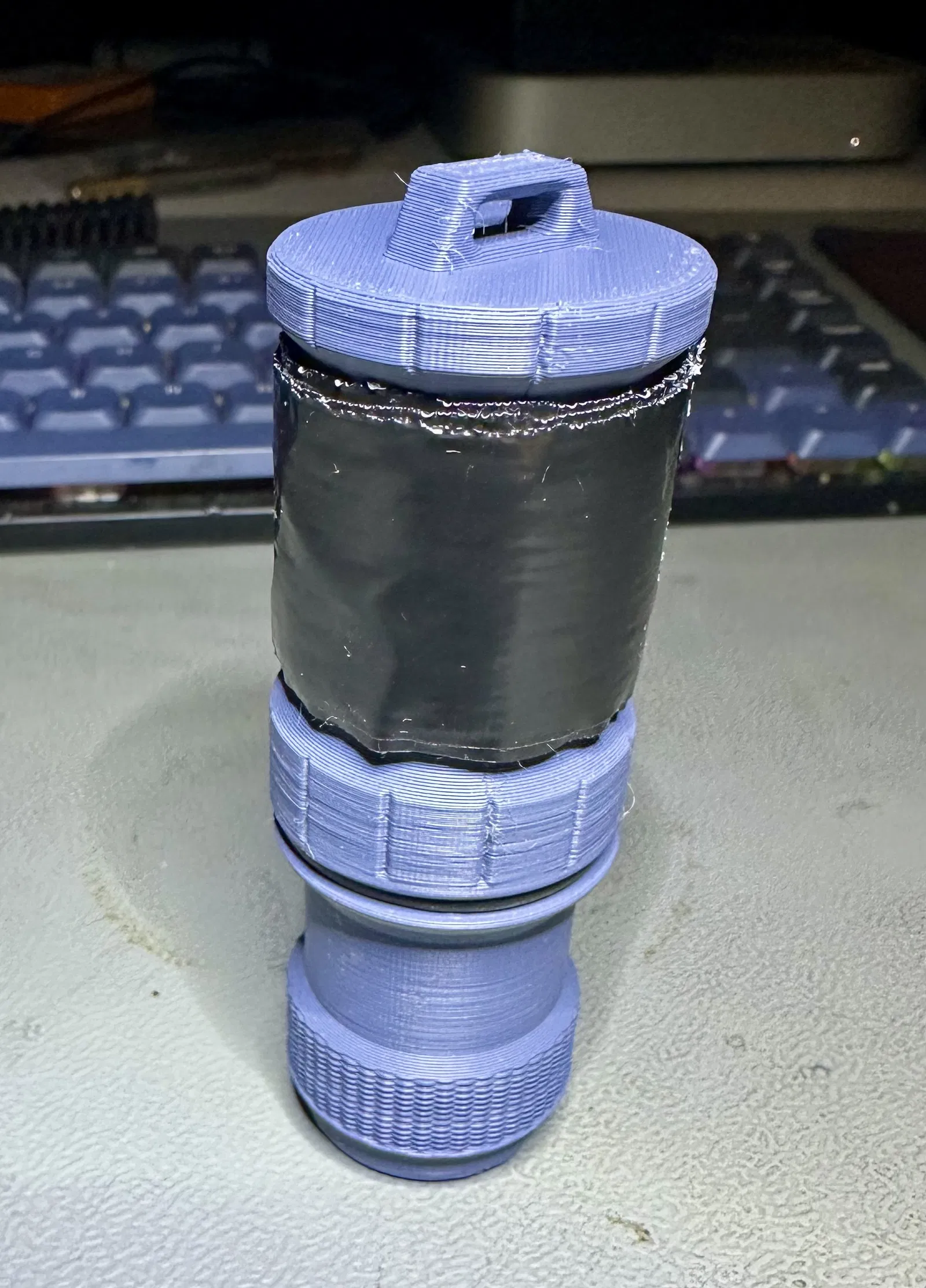 Hộp đựng diêm khẩn cấp EDC cho diêm UCO, tích hợp còi cứu sinh và bề mặt đánh lửa chống ẩm bên trong. Có thể quấn băng keo dự phòng quanh nắp. In bằng PLA, kích thước 88x32mm.