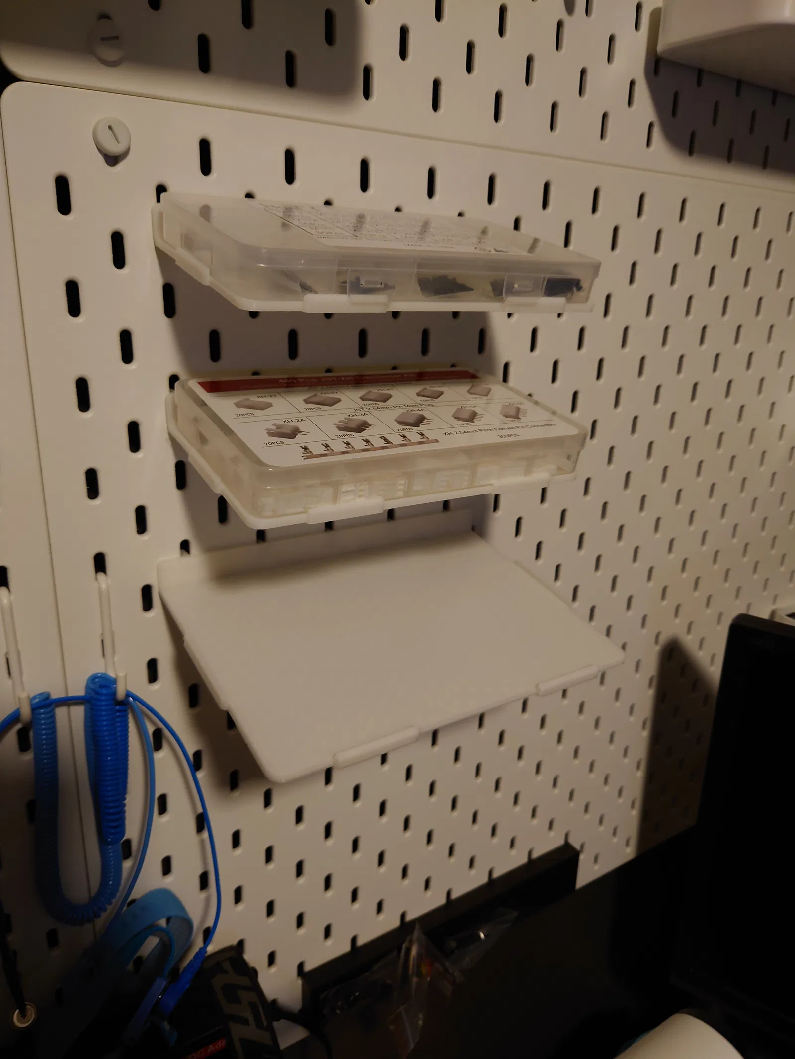 Phiên bản XL tùy chỉnh của khay lớn, kích thước ~190mm x 126mm, dành cho hộp sắp xếp lớn hơn trên bảng IKEA SKADIS. In bằng PLA+ với hỗ trợ và độ dày ruột 20%. Khuyến khích dùng brims cho móc.
