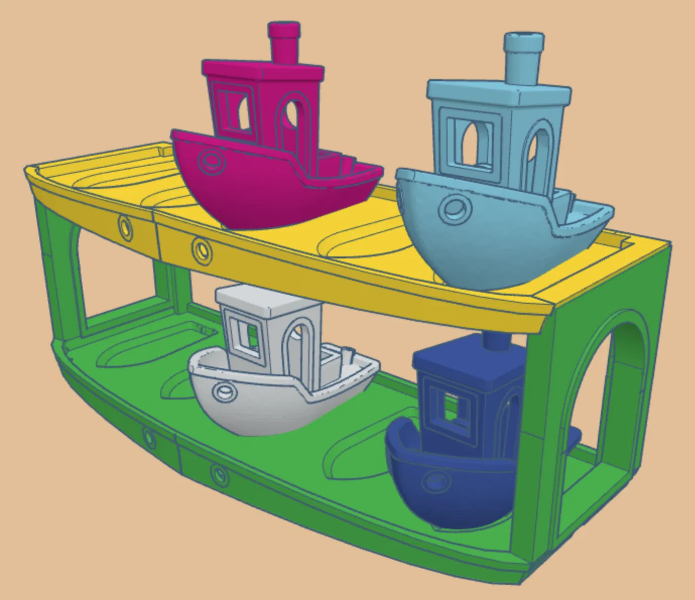 Phiên bản thu nhỏ của kệ "Benchy Benchy Storage Shelf" gốc, với thiết kế hộp trên mới cho phép xếp chồng thêm Benchy. Tiết kiệm vật liệu in ấn và tối ưu không gian lưu trữ.