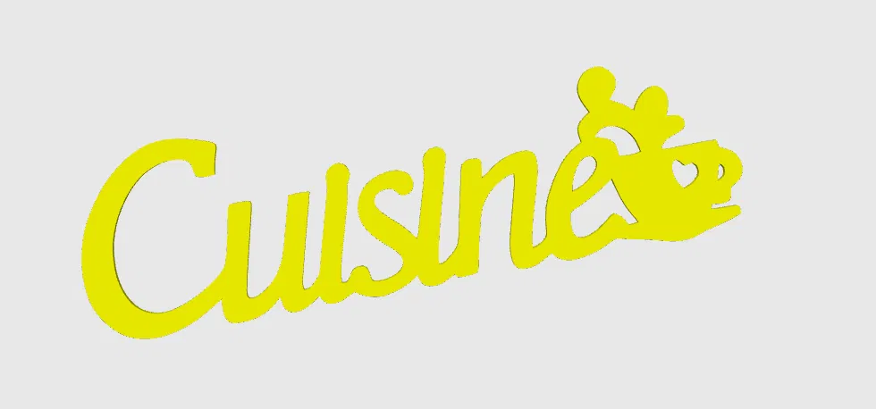 Trang trí tường "Cuisine" là một thiết kế chữ trang trí miễn phí, bạn có thể in ở mọi kích thước tùy thích. Chỉ cần in bằng PLA hoặc PETG với độ điền 10-15% mà không cần hỗ trợ. Một món quà tuyệt vời cho căn bếp nhà bạn!