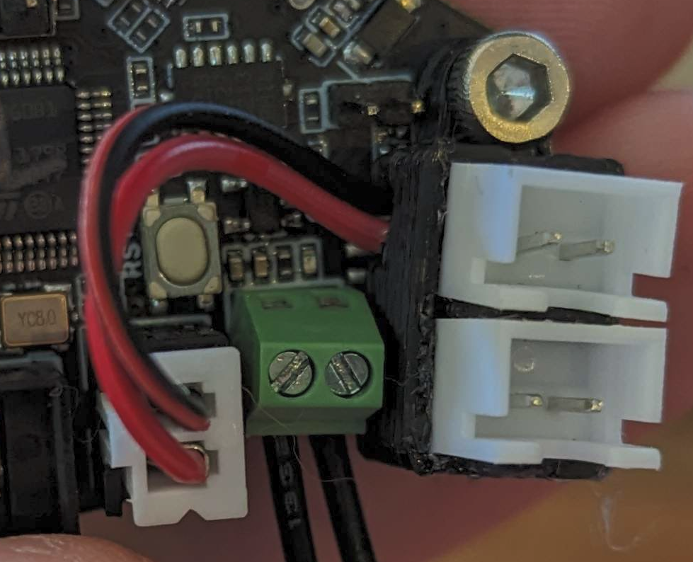 Chỉ cần trượt hai đầu cắm JST vào insert, sau đó hàn dây vào các đầu nối và bấm một đầu JST-XH vào cuối dây này để kết nối với cổng cắm của bo EBB.