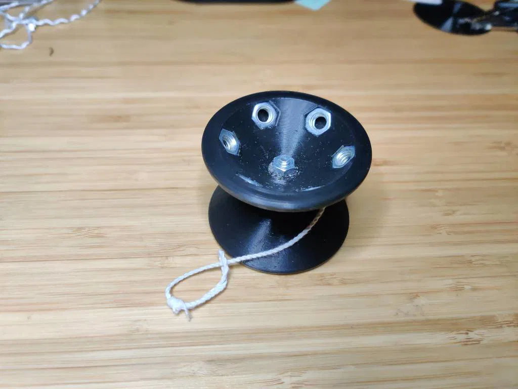 Mô tả một con yoyo "chuyên nghiệp" có trọng lượng, phản hồi tốt, với vòng bi để thực hiện các trick nâng cao. Hướng dẫn chi tiết cách in, chuẩn bị và lắp ráp, bao gồm các cài đặt in đề xuất và danh sách bộ phận cần thiết. Lưu ý về việc in úp cạnh ngoài và sử dụng phần cứng inch.