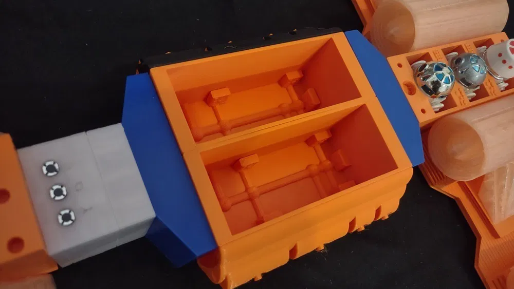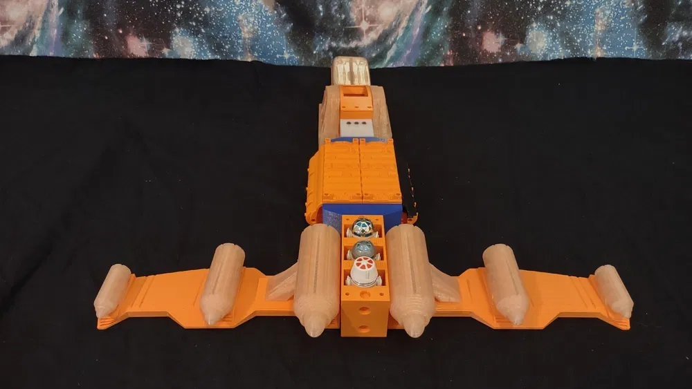 Con tàu này được dự định là phương tiện cho một người + nhiều rô-bốt. Tuy nhiên, bạn có thể in bao nhiêu khoang lái tùy thích và gắn chúng lại với nhau, vì vậy bạn có thể chứa được nhiều nhân vật hơn...