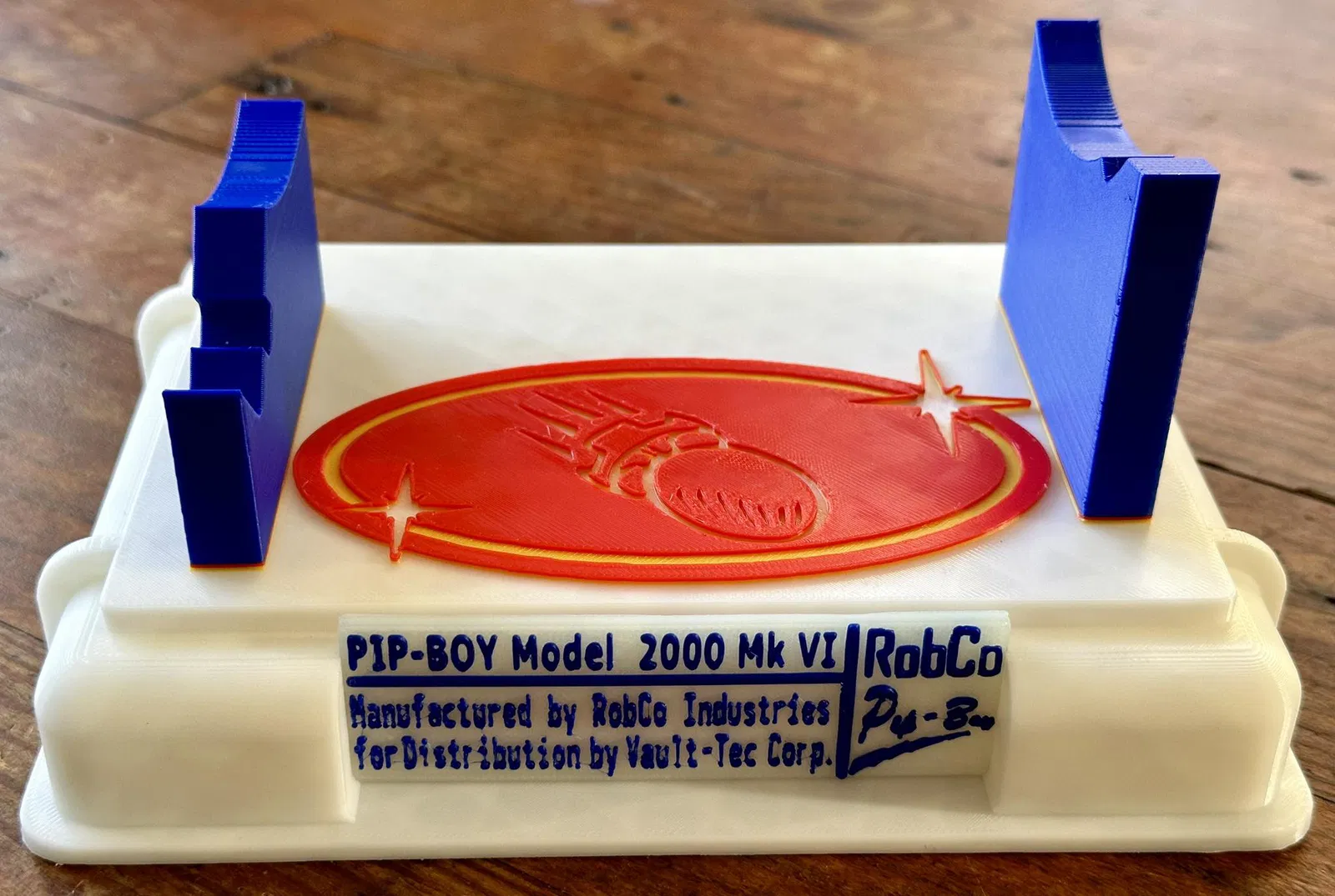 Chân đế hoàn chỉnh với logo Sugar Bombs và chỗ gắn bảng hiệu đã chỉnh sửa, thích hợp cho người hâm mộ Fallout và Pip-Boy.
