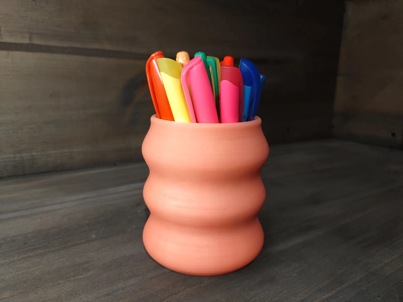 Một cái chân cắm/chậu hoa/cốc đựng đồ hình sóng đơn giản, đa năng để đựng bất cứ thứ gì. In bằng PLA với 3 lớp vỏ và 20% mật độ ruột để đảm bảo độ chắc chắn.