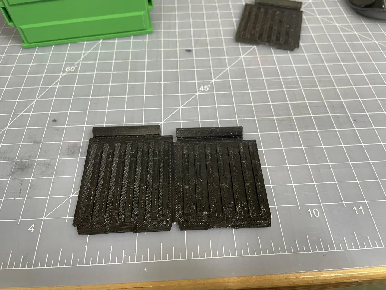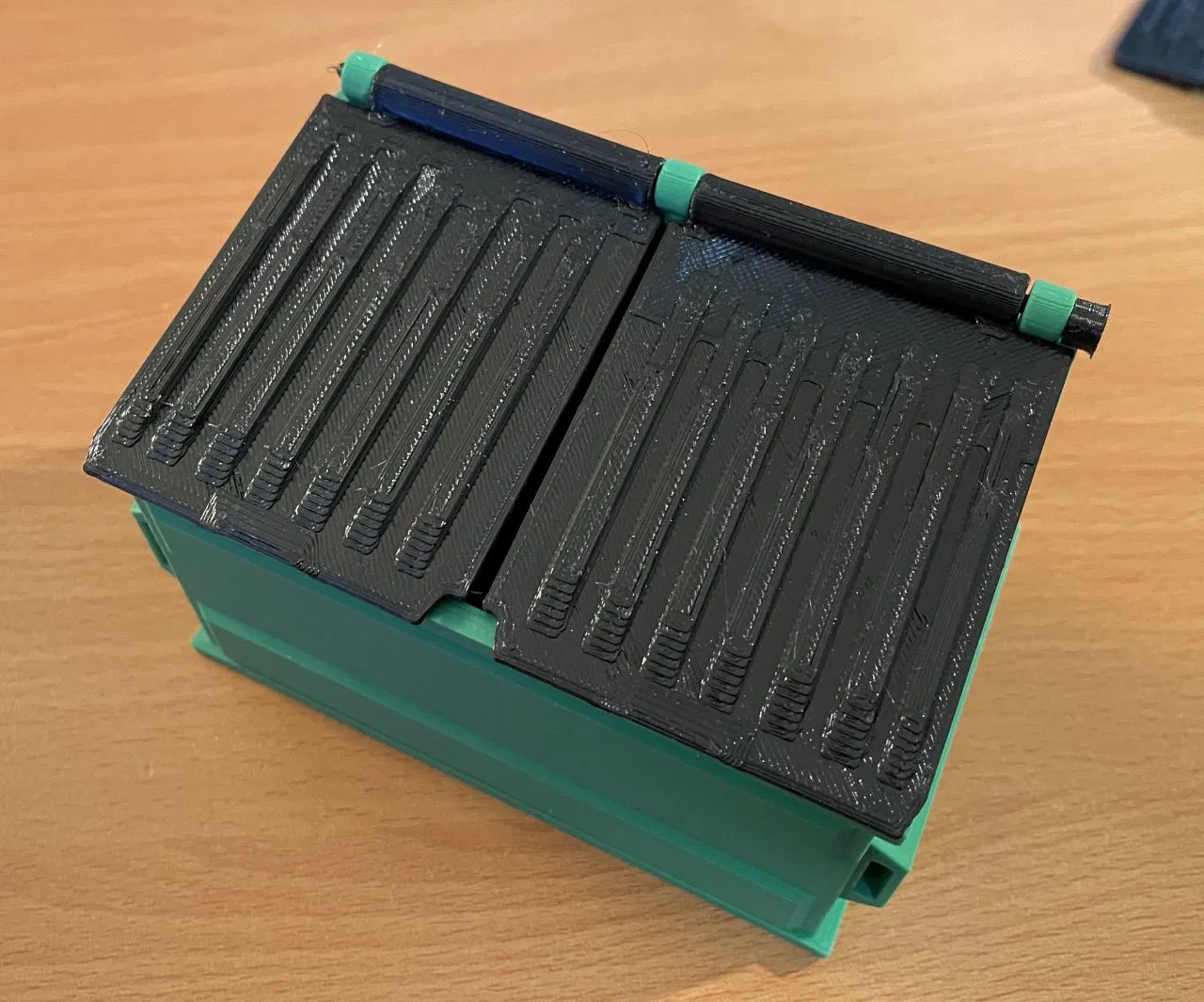 Tui in mấy cái nắp này bằng TPU để cho nó có cảm giác và âm thanh giống nắp thùng rác thiệt vậy đó. Mấy cái "tay cầm" tui in bằng PLA không có support vẫn ngon lành, mà tui in bằng TPU thì không tài nào in cho sạch được. Cuối cùng tui phải thêm support sát vô, rồi chỉnh tốc độ quạt 100% cho support interface (cài đặt của Orcaslicer) là in được support TPU mà gỡ ra vẫn ngon.