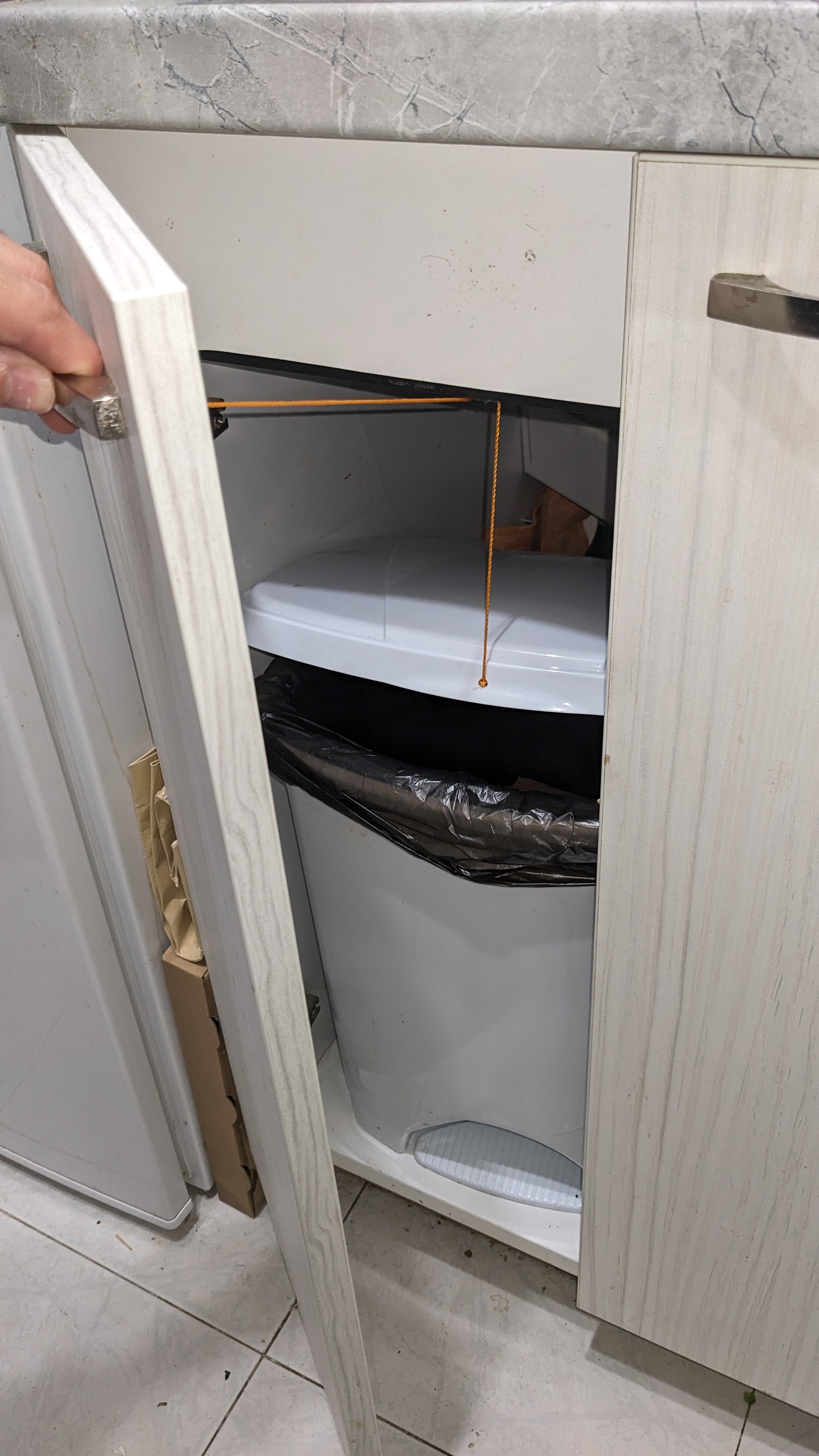 Mô hình đơn giản giúp tự động mở nắp thùng rác khi bạn mở cửa tủ.