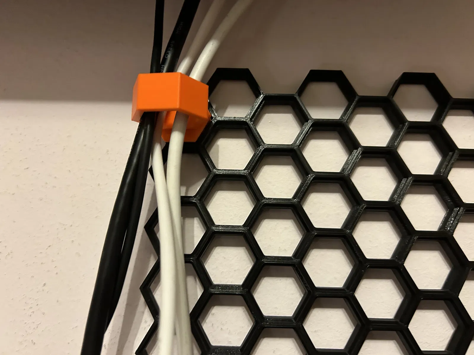 Lỗ lục giác mở để luồn dây cáp vào tường lưu trữ dạng tổ ong. Dùng với insert rỗng. Không cần hỗ trợ (supports). Phiên bản nhỏ nhất: