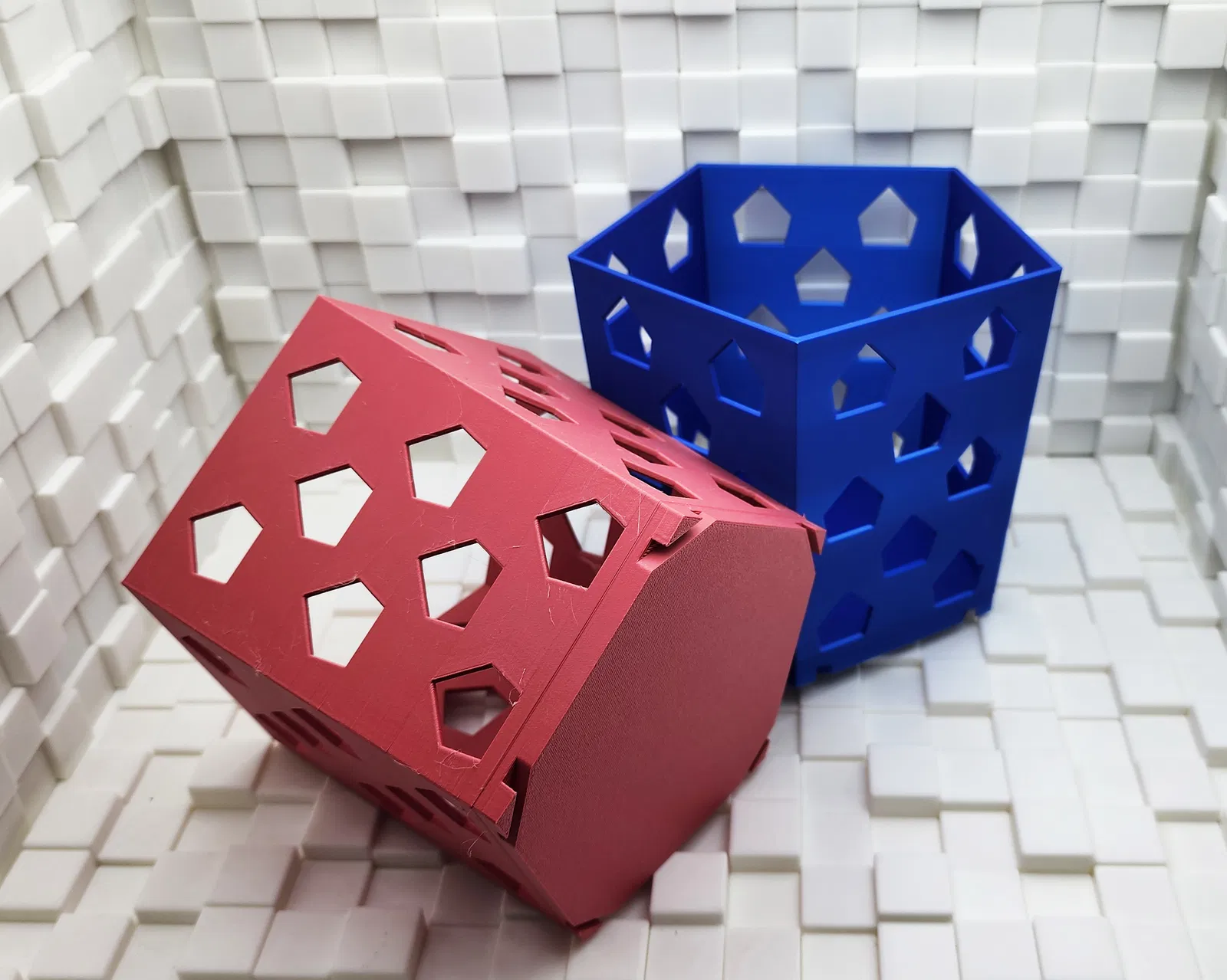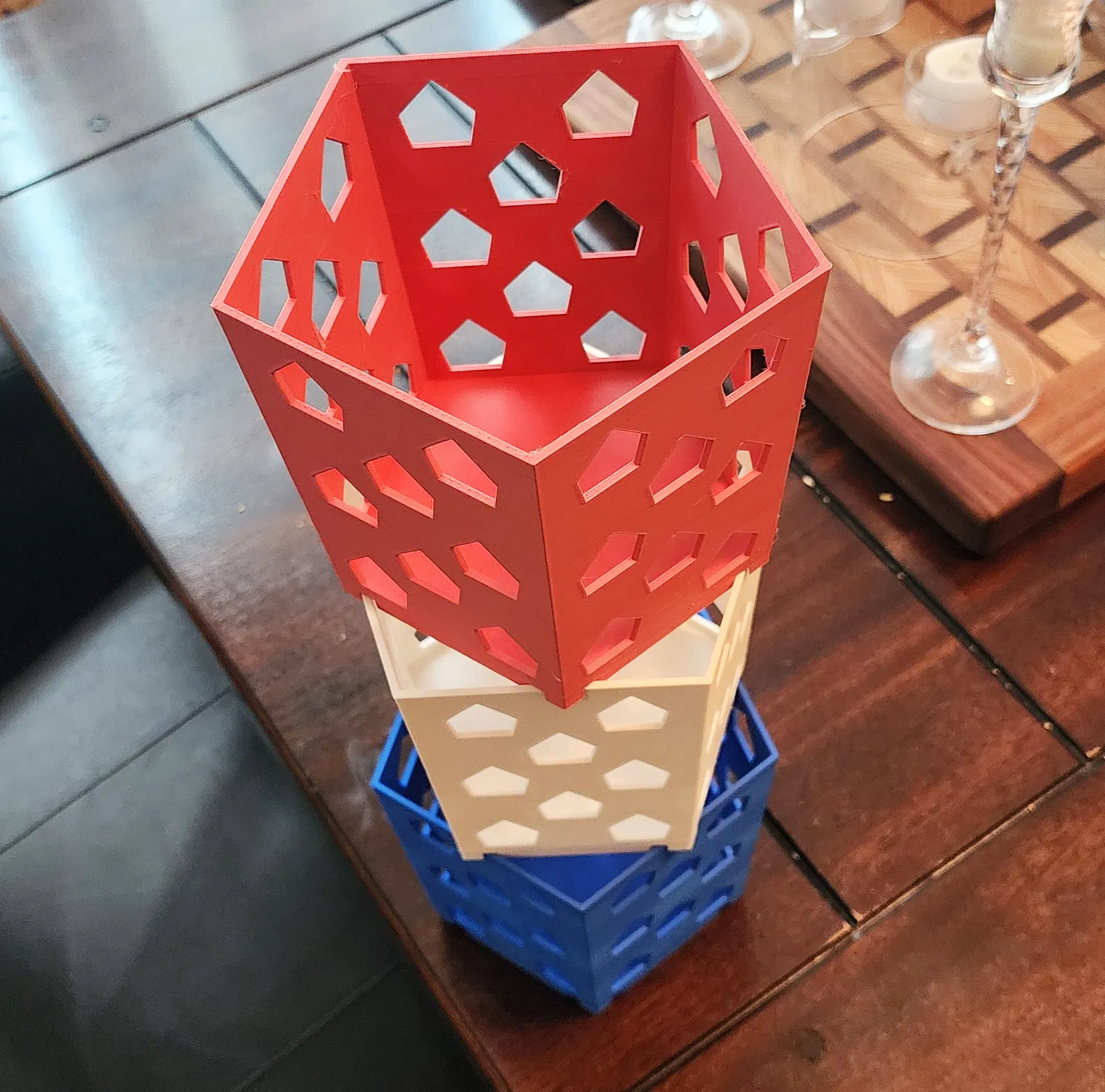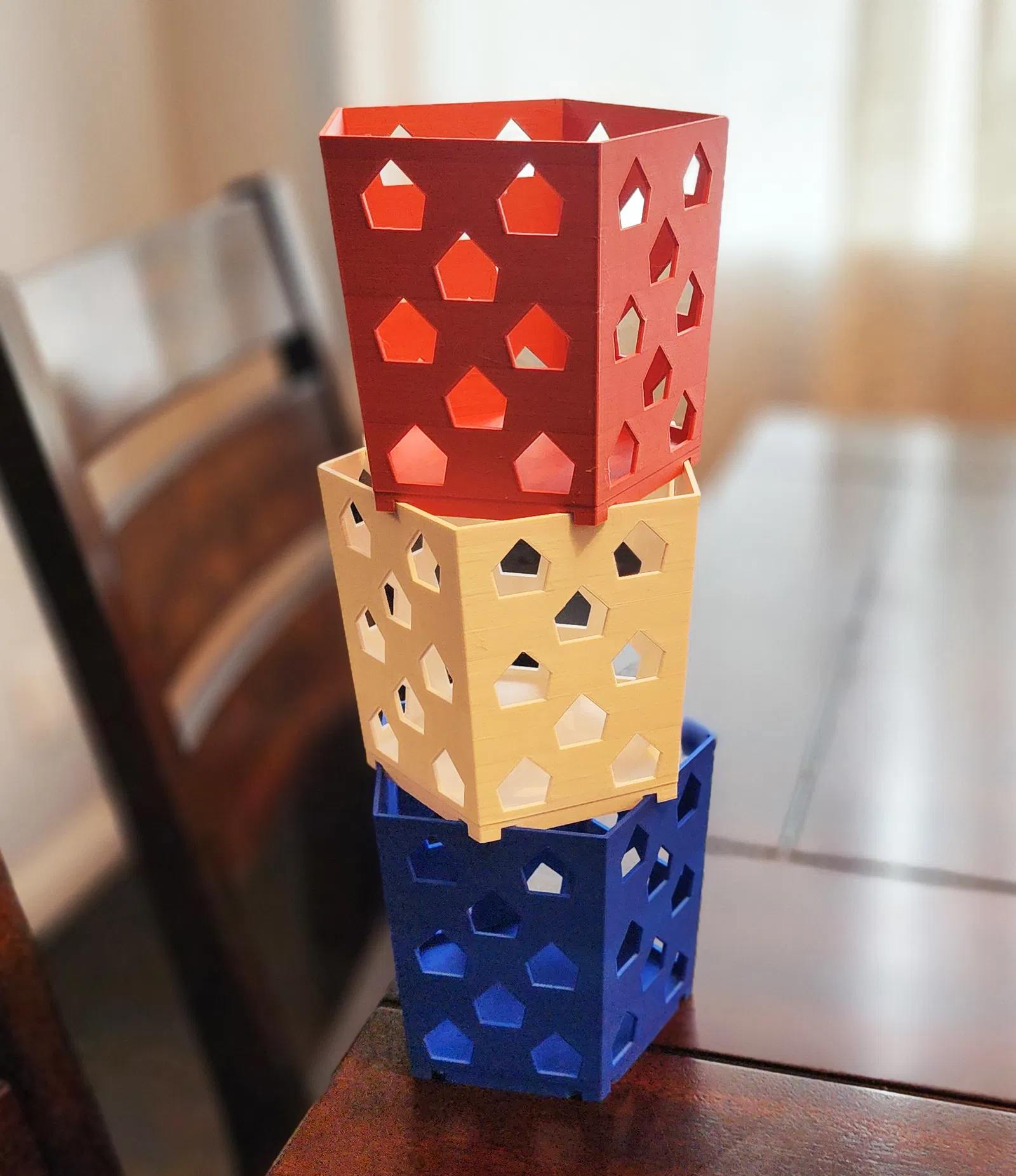 Hộp Đựng Ngũ Giác Xếp Chồng Không Cần Support. Có thể in vừa trên máy Mini hoặc tùy chỉnh kích thước theo ý muốn. Bạn có thể xếp chồng chúng lên nhau cao bao nhiêu tùy thích. Nếu gặp khó khăn với các góc, hãy thêm brims khi in nhé.