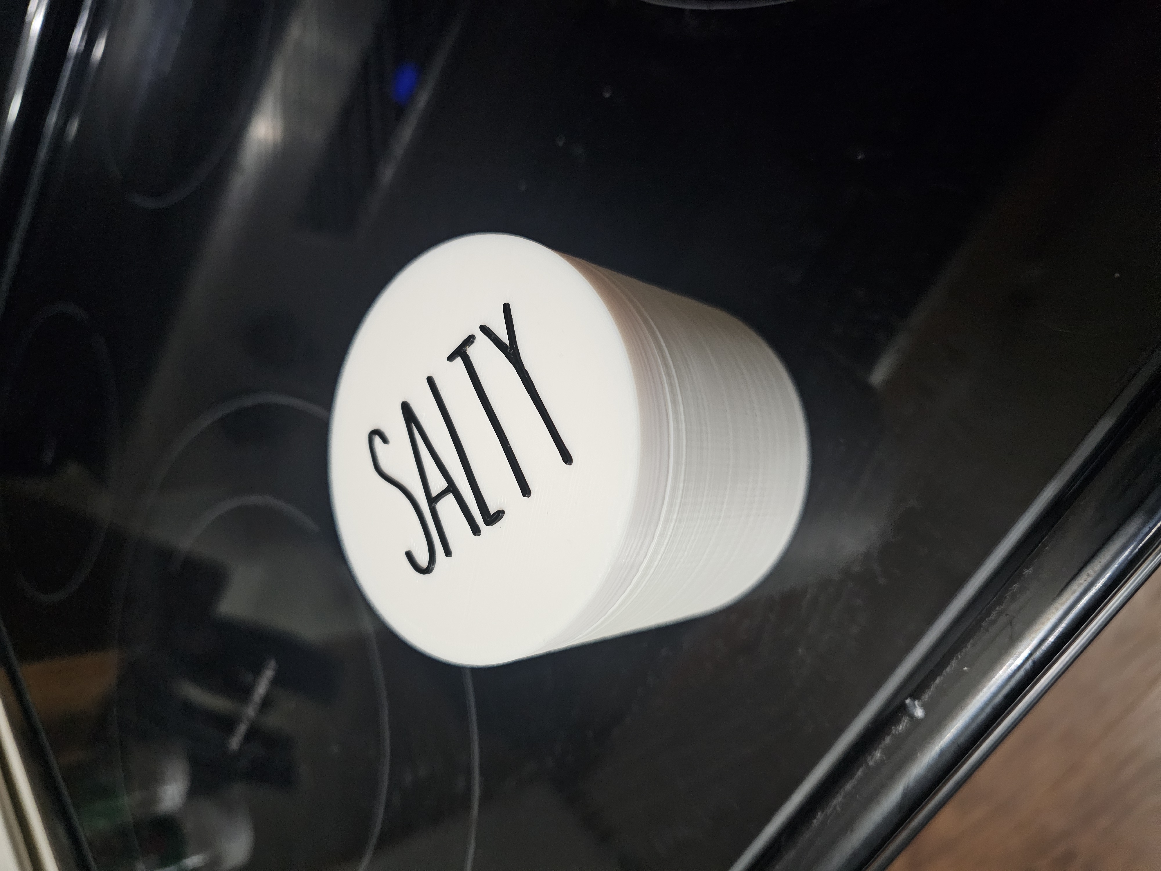 Phiên bản chỉnh sửa của hũ muối Rae Dunn, một vật dụng độc đáo cho nhà bếp của bạn. Thêm chút phong cách và tiện lợi với thiết kế có nam châm này.