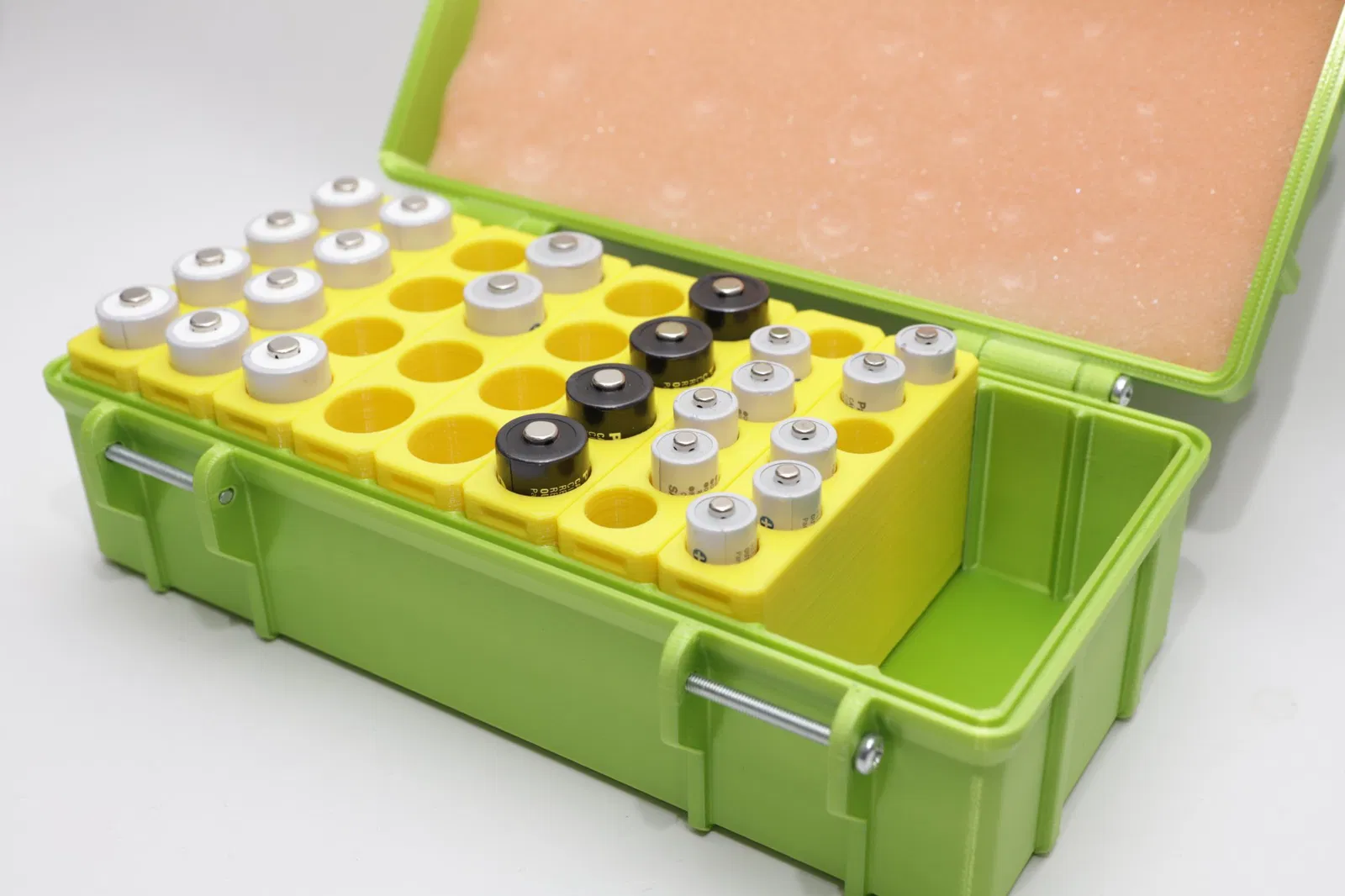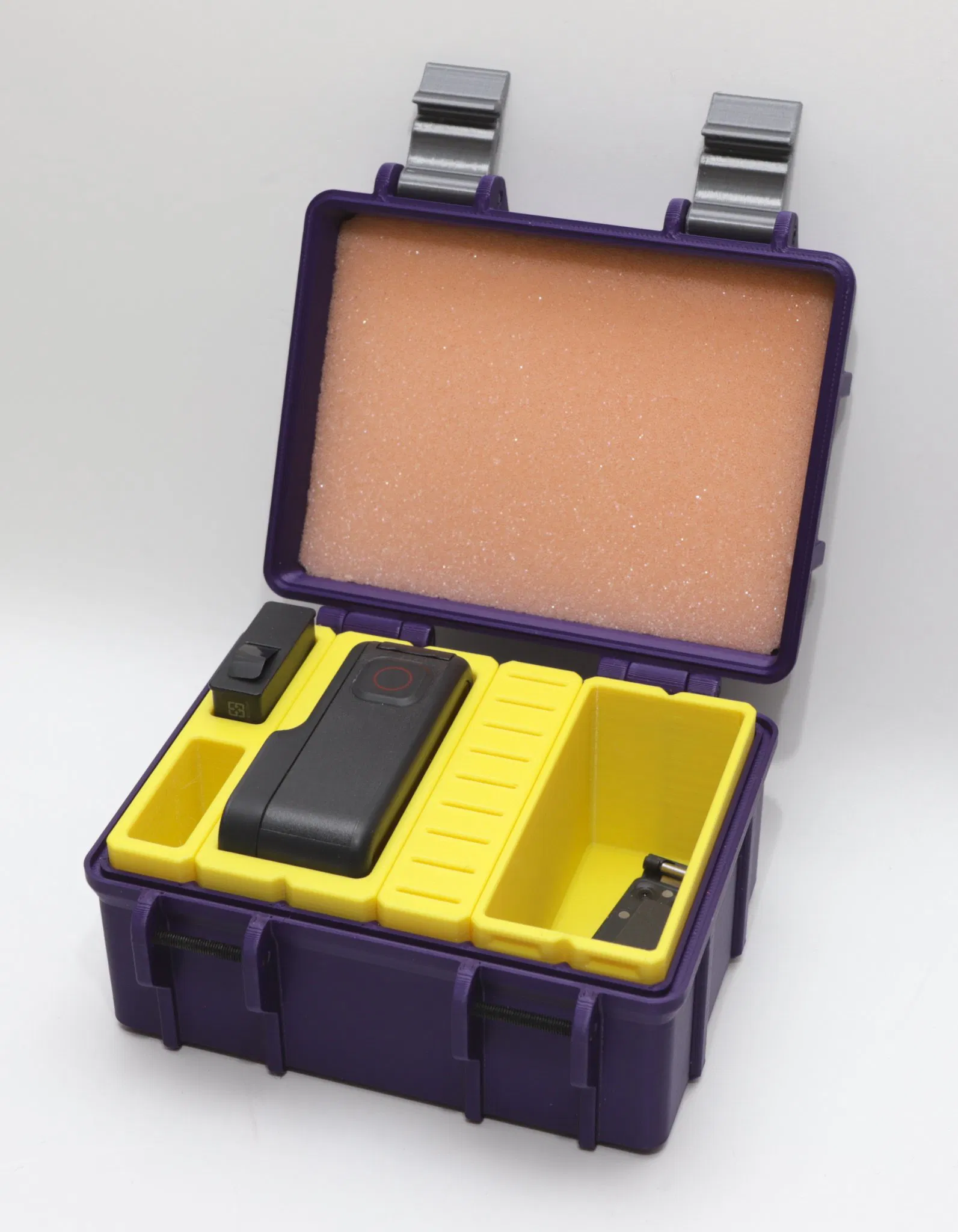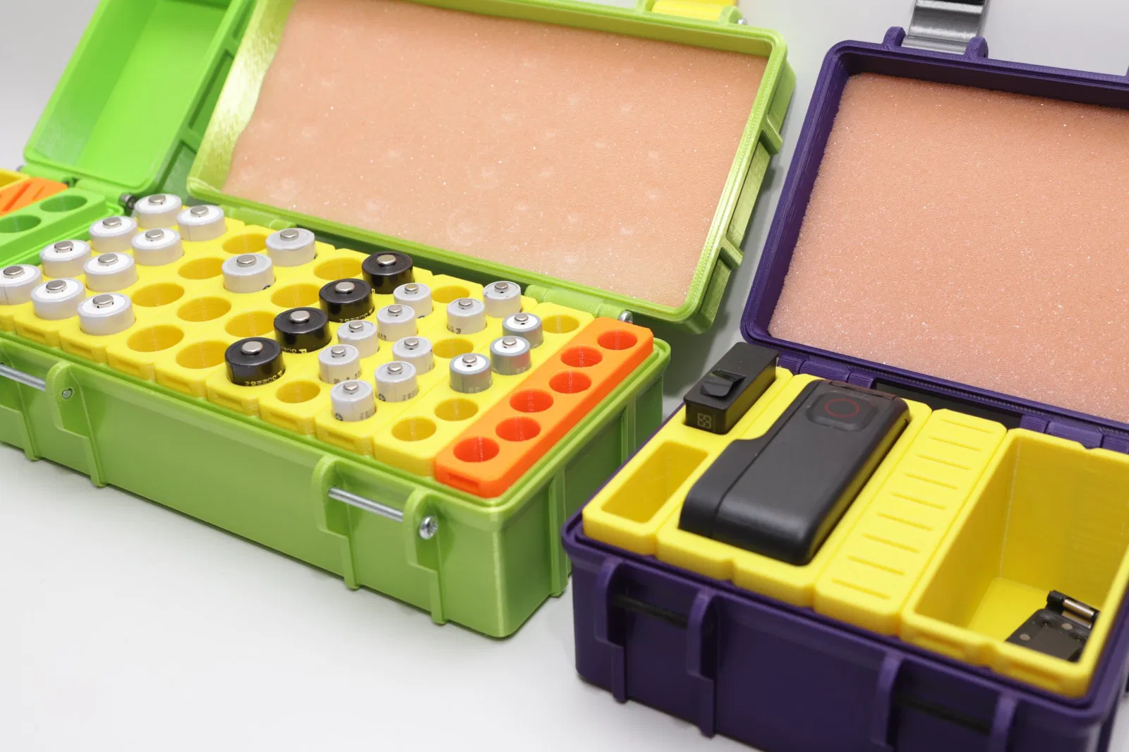 Hộp cứng có thể tùy chỉnh với các bộ chèn mô-đun, có thể sửa đổi trong Fusion 360. Bao gồm các bộ chèn cho pin, thẻ SD, đầu phun và hơn thế nữa. Yêu cầu vít M3 để lắp ráp. Phiên bản này có chiều cao khe cắm tiêu chuẩn.