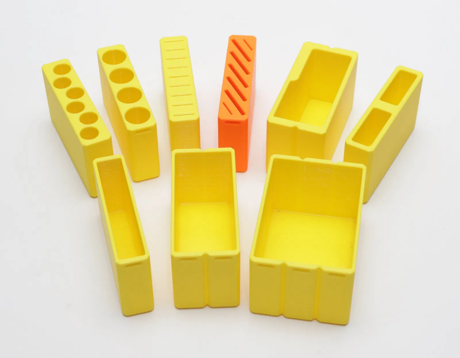 - Đã cập nhật các file 3MF & Fusion 360 ### Bộ chèn Trong Fusion 360, bạn có thể tăng tham số “InsertDummies” để thêm các bộ chèn trống để tự thiết kế rất dễ dàng. Nhiều bộ chèn đã được bao gồm sẵn: * Hộp đựng đơn giản (rộng 1-4 khe)