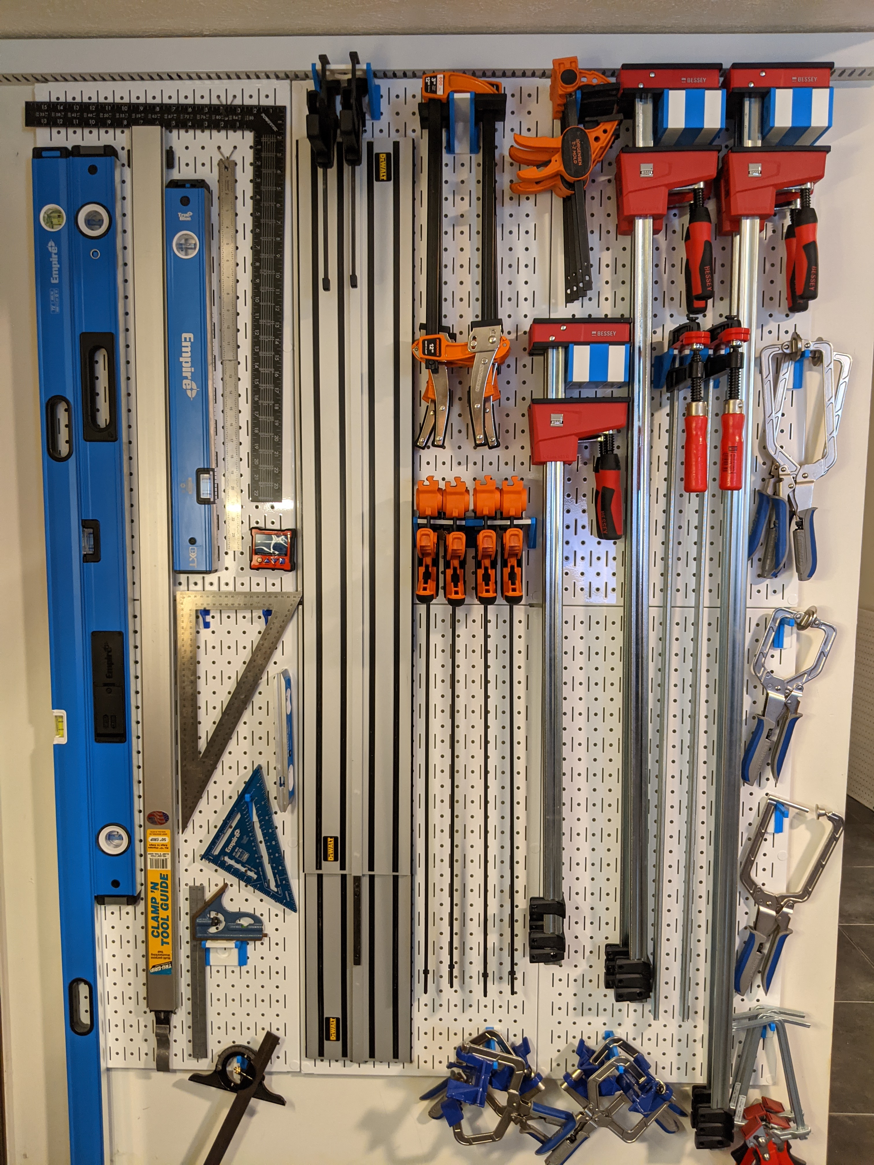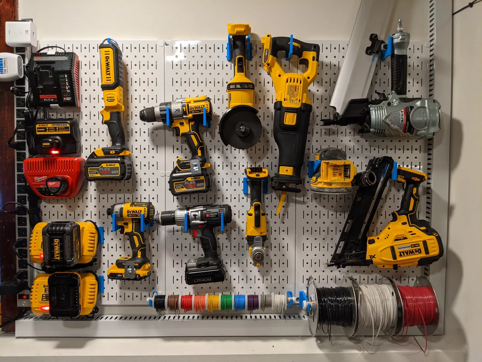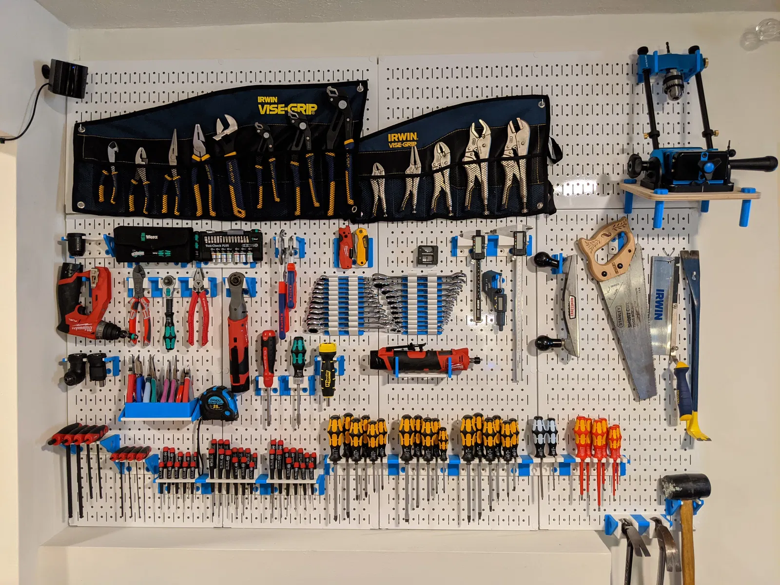 Dự án DDD Printable Wall Control cung cấp một loạt các móc treo bảng ghim dạng module để sử dụng với các giải pháp bảng ghim thép sơn tĩnh điện Wall Control có bán trên Amazon. Sau nhiều nghiên cứu, tôi đã chọn Wall Control làm giải pháp tổ chức bền, cường độ cao và giá rẻ, hoạt động với các chốt bảng ghim tiêu chuẩn 1/4" hiện có. Các tấm bảng cũng bổ sung các khe 1" cho phép tăng cường độ bền và độ cứng cho các móc treo tương thích. Tôi thấy các tấm bảng của họ có giá cả phải chăng, được làm tốt và có nhiều màu sắc và kích cỡ khác nhau.
